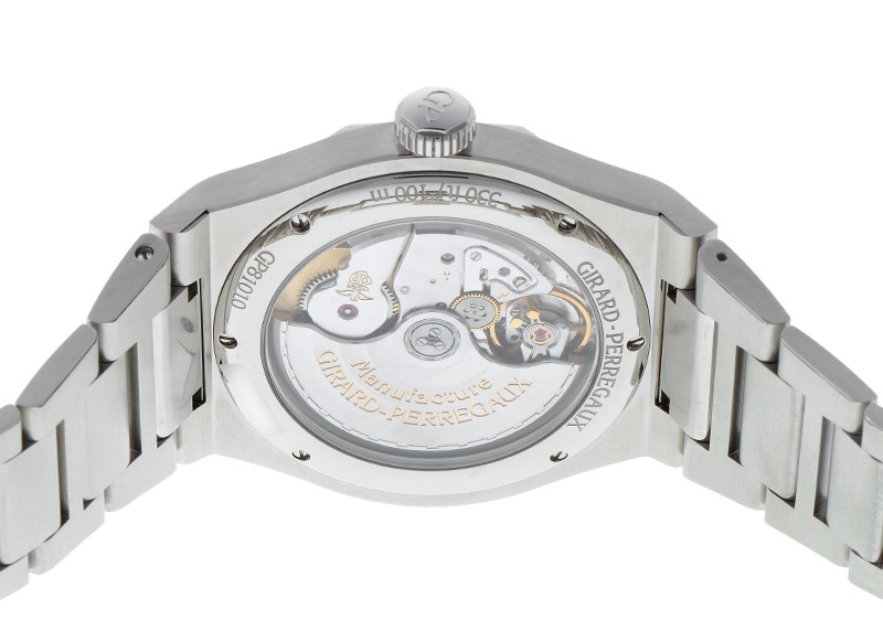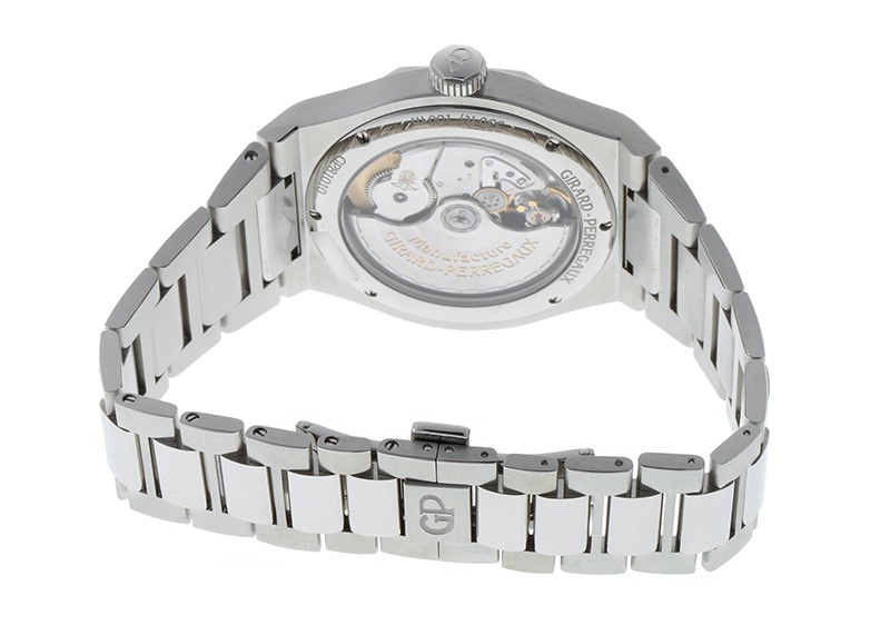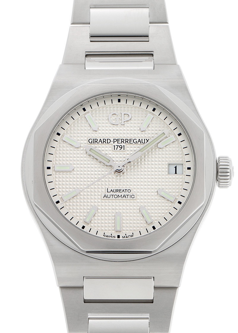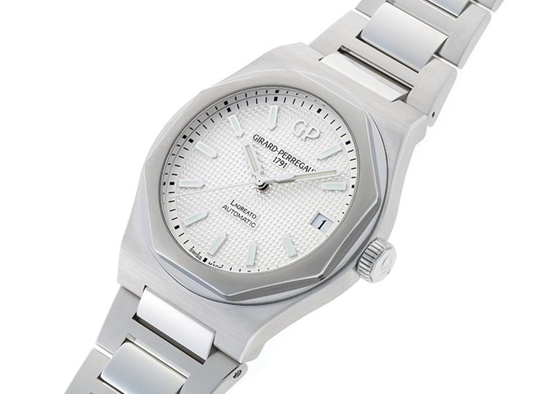 ジラールペルゴより「ロレアート」が入荷しました。 ジラールペルゴを代表するアイコンウォッチ「ロレアート」は、ロイヤルオークやノーチラスと同年代の1975年にクォーツ時計として発表。 クォーツショック只中に 新しい要素を取り入れ打開を図ったという意欲溢れる歴史を持ちます。 ラグを廃したケースのラインから繋がる一体化されたブレスレットや、直線的なエッジと曲線的なラインを組み合わせたオクタゴンのケース、ポリッシュとサテンを組み合わせた繊細な仕上げなどが特徴。 現代のトレンドである「ラグジュアリースポーツ」をいち早く取り入れた スポーティーでありつつエレガントな魅力があります。 今回入荷したのは神々しいシルバー文字盤が魅力的な3針モデル。 文字盤のクルドパリ模様は、伝統と技術の高さがもたらす上品な美しさを示しつつ 文字盤の反射を抑える効果もあります。 それに加え太めの針や夜光により視認性は抜群。 細かいディティールの正確さ・美しさが際立つも、決してギラギラとは主張せず、デイト表示もあり、ビジネスで非常に力を発揮する1本です。 ムーブメントは自社製Cal.GP01800。パワーリザーブは約54時間あります。 機械点検、外観の傷取り(研磨)が完了しています。 付属品は箱・国際保証書(2023年5月)がございます。 さらに詳しい内容を確認されたい方は、お気軽にお問い合せ下さい。 管理用:owm688当店では実店舗を含めた複数の店舗で販売を行っております。店頭販売とネット注文の時間差による売り切れの際はご注文をキャンセルさせていただく場合がございます。何卒ご容赦ください。