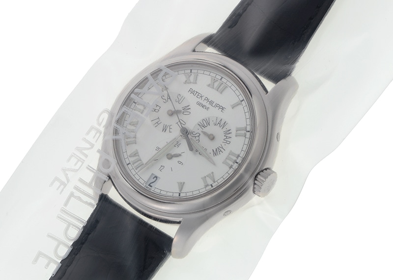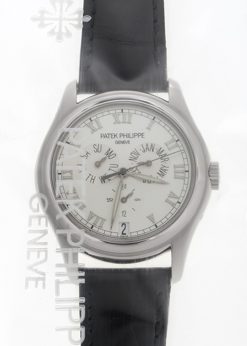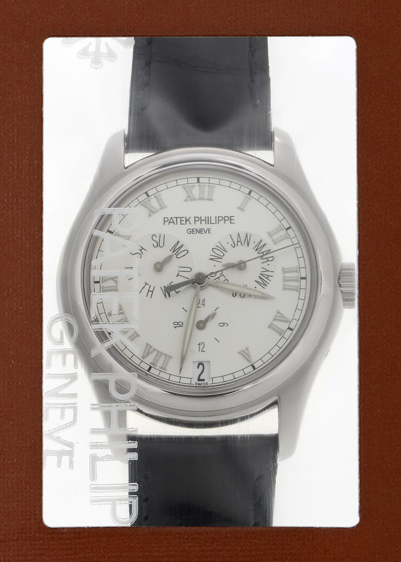 名門パテックフィリップ伝統の複雑機構ともいえるアニュアルカレンダー搭載モデル「5035G-039」が入荷しました。 パテックフィリップは1996年、世界初のアニュアルカレンダーを発表して特許を取得したブランドです。 今まで数多くの派生シリーズを生み出したアニュアルカレンダーは、今ではパテックフィリップを代表するフラッグシップモデルです。 アニュアルカレンダーとは、3月1日以外は自動調整してくれる優れたカレンダー機構を搭載した実用的な時計。 文字盤左上には曜日・右側に月・文字盤下には24時間表示のインダイアル・6時位置日付の表示があり一目でカレンダーがわかる視認性の高さが特徴です。 中でも「5035」は初期モデルとなり、アニュアルカレンダーの特徴的なデザインを持っています。 ローマ数字のアップライドインデックスと時分針のリーフ針に夜光が塗布され暗所でも見やすく パテックフィリップのアニュアルカレンダーを代表するデザインで、後に 5036→5146→4936 へと進化していきます。 ムーブメントは「Cal.315.S.QA.24H」、パワーリザーブは約48時間 商品状態は、2023年10月にパテックフィリップにてオーバーホール(分解掃除)、外装仕上げ、ストラップ交換が完了されている抜群のコンディション。 付属品は箱・保証書(2003年6月)、修理明細書がございます。 2年間の修理保証がございますので安心してお使いいただける上に、メンテナンス後完全な未開封状態ですので、真空パックを開封するところから 新オーナーとしての体験をスタートしていただけます。 さらに詳しい内容を確認されたい方は、お気軽にお問い合せ下さい。 管理用:owm704