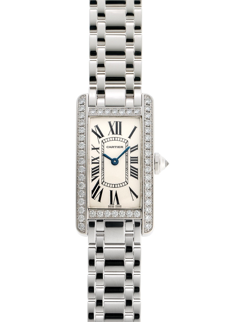 カルティエより、タンクの人気シリーズ「タンク アメリカン SM ベゼルダイヤ」が入荷しました。 一番最初に腕時計を作ったカルティエが、タンクシリーズを初めてデザインしたのが1916年。 戦車を上から見た様子にインスピレーションを受けたタンクは、ラグと一体化した並行に伸びる縦枠が特徴のカルティエを代表するシリーズです。 タンクには様々な派生モデルがありますが、今回入荷したアメリカンは1989年発表。 2番目のタンクである“タンク サントレ”をベースに、より"モダンに”改良されたものです。 ベゼルに敷き詰めたダイヤはしっかりと存在感を放ち、シルバー文字盤にローマ数字というこれぞカルティエというデザインで、視認性もよく実用的。 2023年にシリーズが刷新された為、ホワイトゴールドのブレスレットタイプはダイヤモンドブレスレット以外は現在販売されておらず、ベゼルサイドだけでなく四辺ともにダイヤを配したタイプも現ラインナップでは手に入りません。 商品状態は2020年にカルティエにてコンプリートサービス済み、当店入荷後に電池交換含む点検と外装仕上げ(磨き)を実施。 ブレスレットサイズは17cmまで対応。ケースサイドに取り切れないキズがございますが、それ以外は非常に綺麗で良好な状態です。 付属品として 保証書(2005年9月)・修理明細書(2020年3月)がございます。 さらに詳しい内容を確認されたい方は、お気軽にお問い合せ下さい。 ※生産終了モデル 管理用:own017