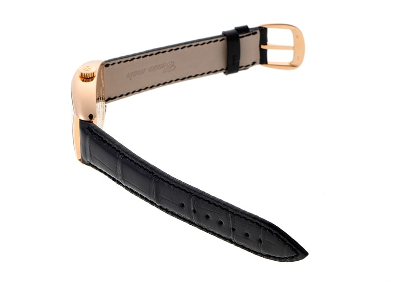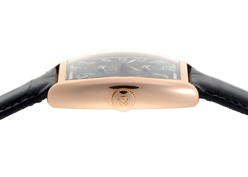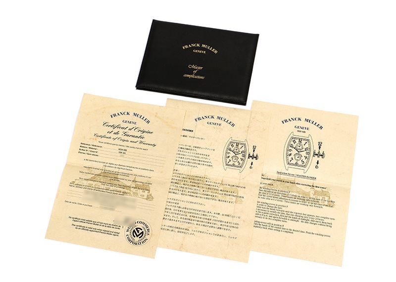 フランクミュラーの「マスターバンカー」が入荷しました。 マスターバンカーは銀行家の希望により誕生をしたモデル。 3タイムゾーンの機構をもち、それぞれ個別で時刻の設定が可能。 操作性も優れており、一つのリューズで調整ができ、3時位置にデイト表示が付きます。 フランクミュラーを代表するトノウカーベックスのケースに納まり、 トノウは上から見たときの形状で樽型の形、 カーベックスはケースを側面から見たときのカーブをしている形状を指します。 腕へのフィット感は抜群で、多くの定番シリーズで採用がされています。 文字盤の配色をみるとインダイヤルもブラックで統一がされているため、 マスターバンカーシリーズの中でも初期のモデルです。 ローズゴールドの素材で決して派手ではなく落ち着いた雰囲気が感じられます。 提携工房にてオーバーホール(分解掃除)、外観の傷取り(研磨)をおこなっています。 当たり傷等なく状態は良好です。 ストラップは純正新品のベルトを取り付けています。 フランクミュラーの保証書が付属をして、国内の正規販売店で2001年6月に販売がされた商品です。 別途、携帯ケースをお付けいたします。 さらに詳しい内容を確認されたい方は、お気軽にお問い合せ下さい。 管理用:own468