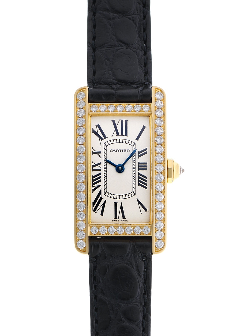 カルティエより、タンクの人気シリーズ「タンク アメリカン SM ダイヤモンド」が入荷しました。 一番最初に腕時計を作ったカルティエが、タンクシリーズを初めてデザインしたのが1916年。 戦車を上から見た様子にインスピレーションを受けたタンクは、ラグと一体化した並行に伸びる縦枠が特徴のカルティエを代表するシリーズです。 タンクには様々な派生モデルがありますが、今回入荷したアメリカンは1989年発表。 2番目のタンクである「タンク サントレ」をベースに、よりモダンにアレンジされたシリーズです。 ケースの上下とサイドに敷き詰めたダイヤモンドはしっかりと存在感を放ち、シルバー文字盤にローマ数字というこれぞカルティエというデザインで、視認性もよく実用的。 タンク アメリカンシリーズはデザインが刷新されて、四辺ともにダイヤモンドを配したタイプは現ラインナップではご用意がございません。 カルティエにて機械点検、ガラス交換、外観の傷取り(研磨)をおこない、ストラップは当店オリジナルのアリゲーターベルトを取り付けています。 ワンタッチのバックルが付属して、脱着時の落下の恐れもなく使い勝手も抜群です。 時計の状態も良く、修理明細書(2024年6月)が付属します。 さらに詳しい内容を確認されたい方は、お気軽にお問い合せ下さい。 管理用:owo035