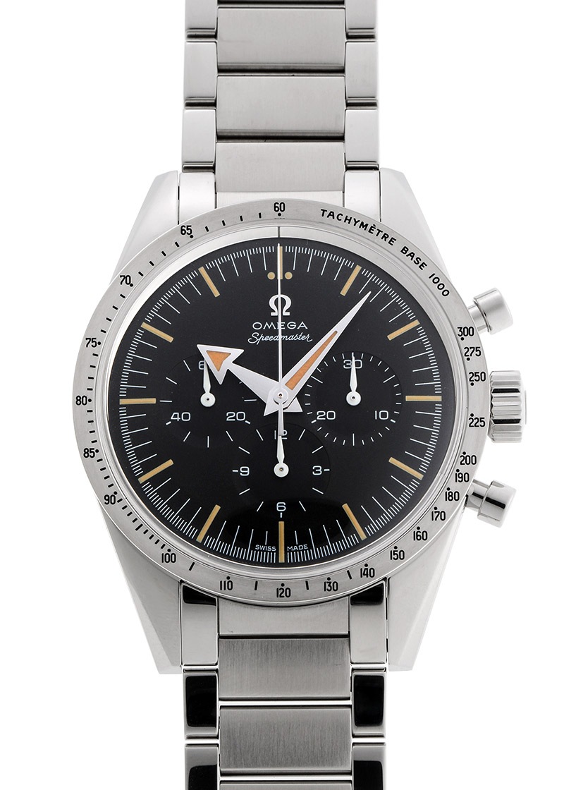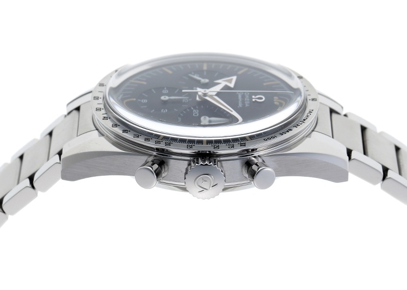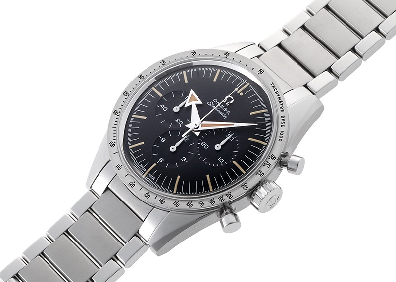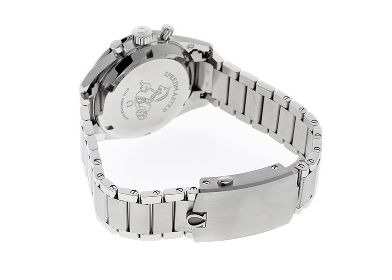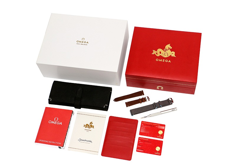 1957年、オメガよりスピードマスター、シーマスター、レイルマスターの3つの「マスター」を冠するモデルが誕生しました。 最も魅力あるエピソードを持つスピードマスターは、1963年にNASAの厳格なテストをクリアし、1969年に第3世代のモデルがNASAの公式装備品として宇宙空間においても使用されます。 こちらは、2017年に誕生60周年を記念して発表された世界3557本限定のモデルで、初代モデルCK2915のケースをデジタルスキャンし、新たに図面を起こした復刻版です。 第2世代からは見られないブロードアローの時分針とタキメーターを刻むステンレススティールベゼルが特徴的です。 文字盤と夜光にはエイジングしたように見える加工が施され、雰囲気を存分に堪能することが出来ます。 ムーブメントはキャリバー1861でパワーリザーブは48時間。 こちらは歴代のスピードマスターが搭載していたキャリバー321、キャリバー861と続いた手巻式の一体型クロノグラフの最終形です。 ベースはレマニアのキャリバー873、古典的な造形が魅力な機械です。 2017年10月に販売がされた商品で、オメガの箱、保証書、ピクトグラム、限定証明書、バネ棒外しが付属します。 また、交換用のカーフストラップとNATOストラップが付属し、それぞれに1950年代のデザインを再現した尾錠がついております。 ストラップはどちらも未使用品です。 ブレスレットは腕周りが約20.5cmの方まで対応可能です。 提携工房にて点検、調整、外観の傷取り(研磨)を行っています。 裏蓋に取り切れない傷が若干みられますが、この点を除けばとても綺麗な状態です。 さらに詳しい内容を確認されたい方はお気軽にお問い合せ下さい。 管理用:owo160