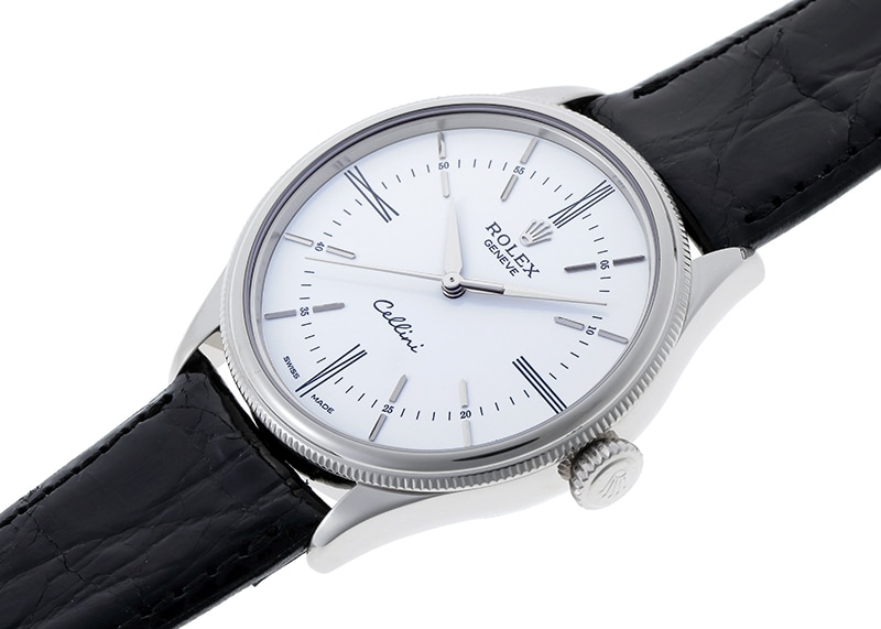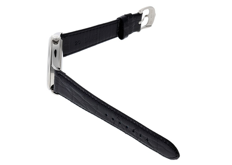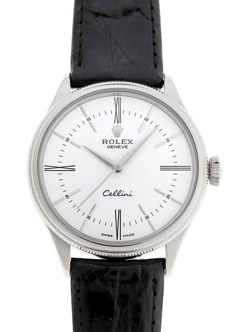 ロレックスより、ホワイトゴールド素材を使用したクラシックライン「チェリーニ タイム」が入荷しました。 ロレックスと言えば昨今は特にスポーツウォッチの相場が高騰していることが話題ですが、ヴィンテージの世代から今に至るまで、チェリーニやプリンスなどレザーベルトのドレスウォッチに於いてもロレックスは忘れてはいけません。 チェリーニは1928年に発表され、ロレックスの伝統を受け継ぎつつ常に進化を重ねてきたドレスウォッチです。 こちらのモデルは2014年に発表された3針のみのシンプルな機構。 アップライトのバーインデックスに、プリントされた3・6・9・12のローマ数字が調和しています。 それらを貫くように配置されたミニッツトラックは、知的な遊び心を感じさせます。 またベゼルは、ドームとフルーテッドの2段仕様になっており、端正でありながらも腕元を華やかに演出します。 ムーブメントはキャリバー3132を搭載、28800振動 パワーリザーブは48時間です。 2015年4月に国内正規店にて販売がされた商品で、ロレックスの箱と保証書が付属いたします。 提携工房にてオーバーホール(機械の分解洗浄)と外装の傷取り(研磨)が完了しており、ストラップはモレラート製の黒色のクロコダイルベルトを取り付けています。 さらに詳しい内容を確認されたい方は、お気軽にお問い合せ下さい。 管理用:owo440