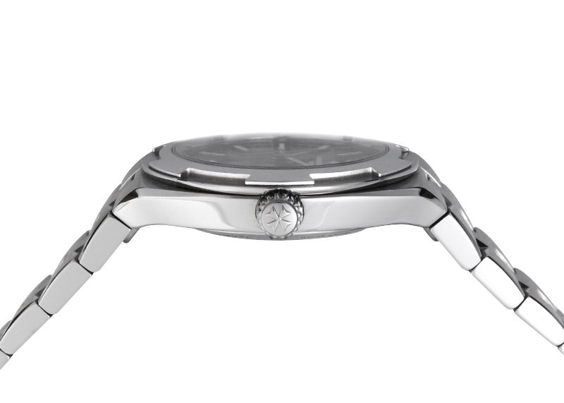 ヴァシュロンコンスタンタンよりスポーツラグジュアリーを代表する「オーヴァーシーズ 」が入荷しました。 オーヴァーシーズは1996年に誕生。時代に合わせて柔軟にデザインを進化させ、現在は各所にブランドのシンボル・マルタ十字を見事に落とし込んだデザインを持ちます。 オーヴァーシーズはその名の通り旅をコンセプトに、スポーツウォッチの実用性と旅先の様々なシーンで活用できるようにワンタッチで付替えできるストラップが特徴です。 1本の時計でどんな服装にもよく似合う贅沢な時間を演出してくれます。 こちらは2023年に登場したケース径34.5mmのミドルサイズのオーヴァーシーズです。 サテンとポリッシュの研磨のメリハリが美しいステンレススティール製で、文字盤の青は光や角度によって深みが増したり鮮やかになったりと動きを感じる仕様に。 スタンダードな41mm径のモデルと比べ、文字盤内の外側のセコンドトラックを省き、スッキリと洗練された印象に仕上がっています。 ブレスレットの装着感も大変良く、ラグからバックルにかけてのテーパーが非常に滑らかで腕元をエレガントに飾ります。 搭載されるのはジュネーブシールを取得している自社製の自動巻きムーブメント「キャリバー 1088/1」。 方位図を模した22Kのゴールドローターや、コート・ド・ジュネーブ装飾が施された美しいムーブメントをスケルトン仕様のケースバックからご覧いただけます。 シェアウォッチとしても大変オススメの一本です。 2023年に国内正規店にて販売がされた商品で、 ヴァシュロンコンスタンタンの箱と保証書が付属します。 さらに詳しい内容を確認されたい方は、お気軽にお問い合せ下さい。 管理用:ia-155