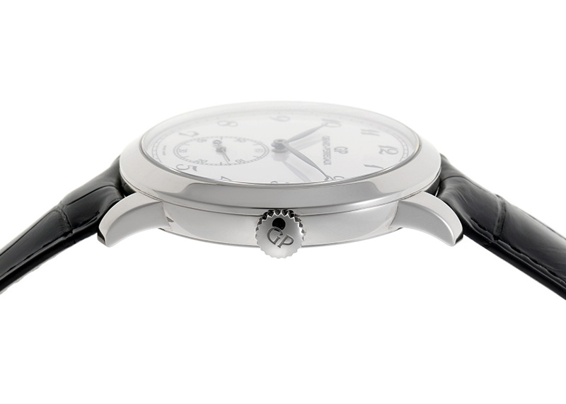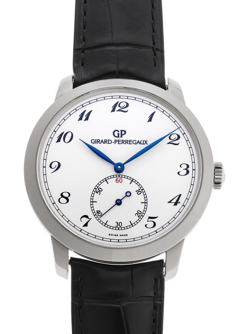 ジラールペルゴより「1966 創立220周年記念モデル」が入荷しました。 1791年の創立以来、自社でムーブメントの設計や製造を行っている歴史ある時計ブランド「ジラールペルゴ」。 1966コレクションはヌーシャテル天文台の100周年記念賞を受賞した1966年のモデルにオマージュを捧げ完成しました。 曲線を意識したケースデザインは滑らかなポリッシュ研磨を丁寧に施し、美しさと共に着用感も向上させています。 こちらは2011年に迎えたジラールペルゴ創立220周年を記念して作られたモデルです。 ホワイトゴールド製のケースにホワイトエナメルのダイヤルを採用し上品な特別感を演出しています。 インデックスやロゴなどの風合いも独特の柔らかさがあり、ブルースティールのリーフ針やミニッツトラックなど、クラシカルですっきりとした印象が魅力的な一本です。 搭載されるムーブメントは自社製の自動巻きキャリバー「GP03300-0050」でパワーリザーブは約46時間です。 スケルトン仕様のケースバックからペルラージュやコート・ド・ジュネーブといった美しい装飾をご覧いただけます。 提携工房にて機械内部の点検と、外装の傷取り(研磨)が完了しており、大変綺麗な状態です。 ジラールペルゴの箱と保証書(無記入)が付属します。 アリゲーターストラップは未使用の状態です。 さらに詳しい内容を確認されたい方は、お気軽にお問い合せ下さい。 管理用:owo505当店では実店舗を含めた複数の店舗で販売を行っております。店頭販売とネット注文の時間差による売り切れの際はご注文をキャンセルさせていただく場合がございます。何卒ご容赦ください。
