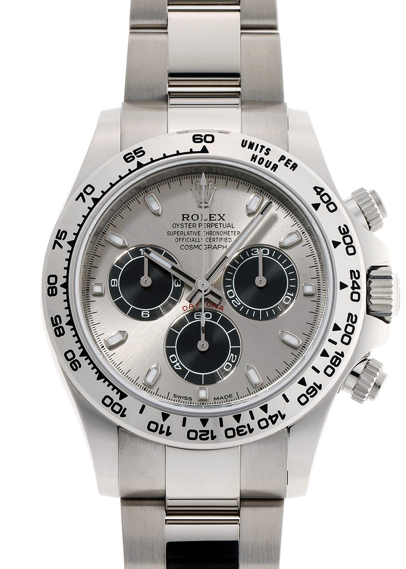 ロレックスより不動の人気を誇る「オイスター パーペチュアル コスモグラフデイトナ 116509」が入荷しました。 116509は2004年から2022年までの18年間製造されてきたロングセラーモデルです。 ホワイトゴールド製は一番人気が高く、他の素材では設定が無い多彩な文字盤が搭載されています。 こちらの2017年から追加されたスチール/ブラックダイアルは、サンレイ仕上げが美しく光の加減で色の濃淡を楽しんでいただけます。 ケースと文字盤のコントラストとインダイアルの黒がバランスよく全体を引き締めて金無垢ならではの存在感と重厚感を味わえる大人のラグジュアリースポーツウォッチです。 ムーブメントは23年間デイトナを支えてきた名機 キャリバー4130を搭載。 72時間のパワーリザーブを有し、耐磁性に優れるブルーパラクロムヒゲゼンマイを採用するなど高い耐久性と精度を実現しています。 2021年9月に販売がされた商品で、ロレックスの箱、保証書が付属します。 駒調整がされた未使用品で、バックル、ブレスレットのサイドに擦り傷がみられます。 さらに詳しい内容を確認されたい方は、お気軽にお問い合せ下さい。 管理用:owp012当店では実店舗を含めた複数の店舗で販売を行っております。店頭販売とネット注文の時間差による売り切れの際はご注文をキャンセルさせていただく場合がございます。何卒ご容赦ください。