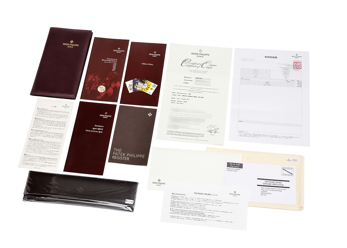 パテックフィリップより「ゴンドーロ 5109G-001」が入荷しました。 ゴンドーロコレクションは、ブラジル リオデジャネイロの著名な販売店であり、パテック フィリップが1872年から1927年まで強固で成功に溢れた取引関係を持ち続けたゴンドーロ&ラブリオ社にちなんで名づけられました。 現在ではパテックフィリップの歴史上重要なアールデコの精神を現代に蘇らせるコレクションとなっており、アールデコ様式を現代的に解釈した特徴的なデザインが主流となっています。 また、レクタンギュラー型、トノー型、クッション型等、ラウンド型以外のタイムピースもゴンドーロとして解釈されています。 こちらのモデルは、まさにアールデコを象徴するようなデザインなっております。 43mm × 30mmの完璧に仕上げられたレクタンギュラーケースに納まるアールデコの精神、「単純化された直線的で幾何学的なデザイン・機能的で合理的、実用性がある・装飾性は低く、シンプルである」といった要素を全て含んだ、パテックフィリップが現代に蘇らせたタイムピースであると言えます。 さらに文字盤にはヴィンテージの懐中時計に使用されることが多い、ブレゲ数字とスペード針の組み合わせが使用されております。 現行コレクションにおいてもこの組み合わせは、一部のグランドコンプリケーション等にしか見られない特徴的かつ希少な組み合わせとなっております。 ムーブメントは、パテックフィリップを代表する手巻きムーブメントのひとつであるキャリバー 215PS。(PSはスモールセコンドを表します。) カラトラバ 5196などに搭載される信用性と実用性を兼ね揃えた歴史的名機です。パワーリザーブ約44時間です。 提携工房にて外装の傷取り(研磨)が済んでおり、 パテックフィリップジャパンにてコンプリートサービス(分解掃除)が完了しております。 ストラップもパテックフィリップへ注文済みですが後日の入荷(目安で7月以降)です。 ベルト交換は時計をお預かりをしてパテックフィリップでの作業となります。 現在付属のストラップは使用感がみられますが、まだまだご使用ができる状態です。 2010年に正規店で販売がされた商品で、パテックフィリップの保証書、サービス保証書が付属します。 2年間の修理保証がございますので安心してお使いいただける上に、メンテナンス後完全な未開封状態ですので、真空パックを開封するところから新オーナーとしての体験をスタートしていただけます。 さらに詳しい内容を確認されたい方は、お気軽にお問い合せください。 管理用:owp039