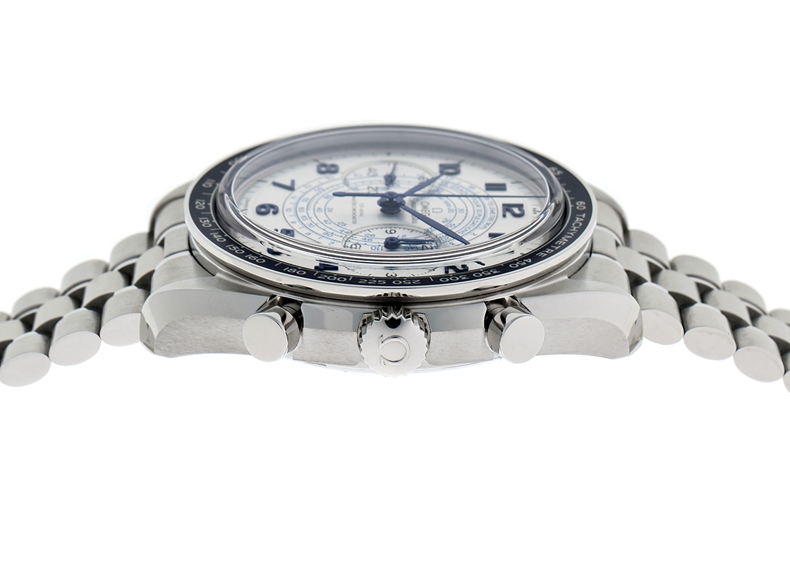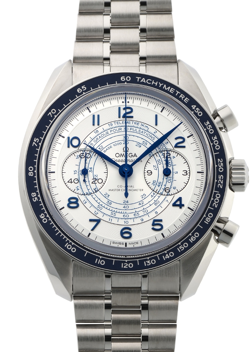 オメガ 「スピードマスター クロノスコープ コーアクシャル マスタークロノメーター」の未使用品が入荷しました。 時計史を代表するクロノグラフと言えば、ロレックスの「デイトナ」、もう一つはオメガの「スピードマスター」でしょう。 1957年に誕生したスピードマスターは、本来モータースポーツでの計測を前提に開発された手巻き式のクロノグラフでした。 1965年、NASAに正式に採用された際、スピードマスターだけが全11項目あるテストにおいて満足できる性能を発揮したと判断されました。ちなみに最終テストに残ったのは、オメガ・ロレックス・ロンジンと言われています。 今回入荷の「スピードマスター クロノスコープ」は、名機33.3CHRO が搭載されていた1930~1940年代のスネイルデザインからインスピレーションを得て、現代に生まれ変わった2カウンターのスピードマスターです。 まず目を引くのはサークル状のスネイルデザインです。ベゼルにタキメーター(速度計測)、文字盤にテレメーター(距離計測)とパルスメーター(脈拍計測)が配されています。 また、2カウンターのクロノグラフは、9時位置にスモールセコンド、3時位置に同軸上の60分および12時間積算計を備え、サブダイヤル2つでスリーカウンターの役目を果たしており、オメガらしいハイスペックを誇るクロノグラフとなっております。 搭載されるムーヴメントはマスタークロノメーター認証の、手巻き式コーアクシャルクロノグラフ キャリバー9908です。 現在、オメガとチューダーしか認証を得ていないマスタークロノメーターは、これまでのクロノメーターの上をいくものです。パワーリザーブは60時間を擁します。 文字盤はシルバー色で、リーフ型の針とアラビア数字のアプライトインデックスのブルーが鮮やかに映えます。 さらに詳しい内容を確認されたい方は、お気軽にお問い合せください。 管理用:owp249