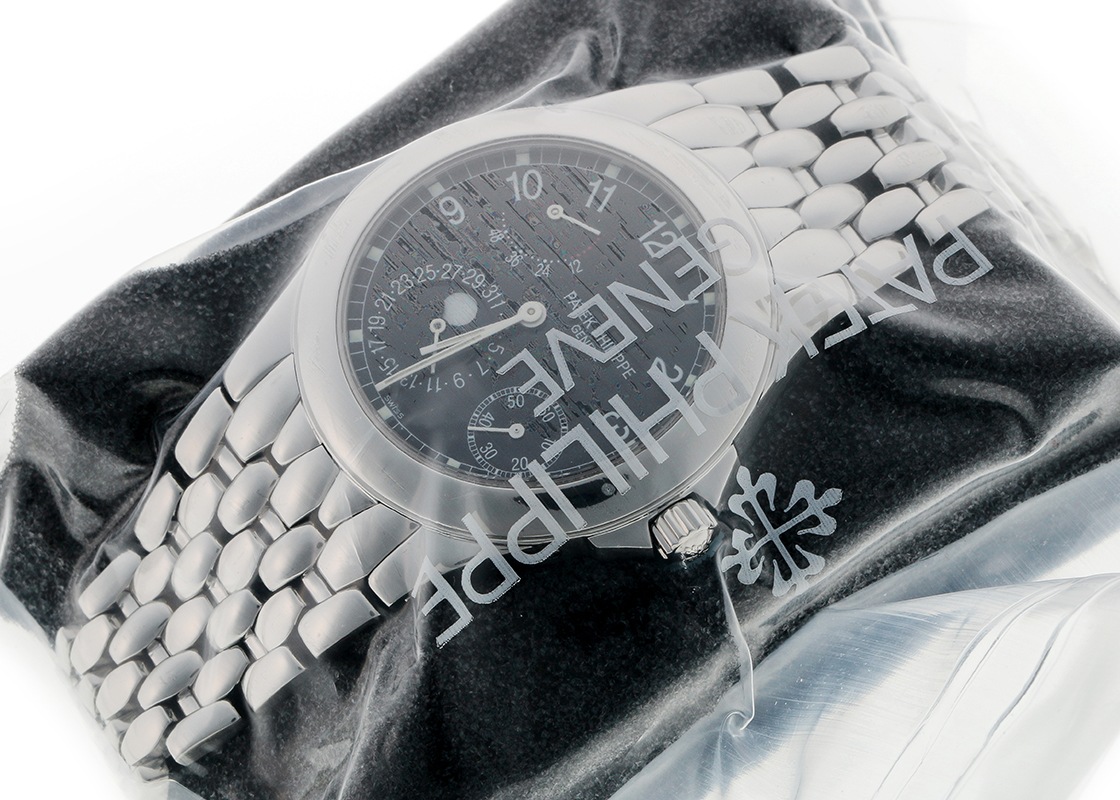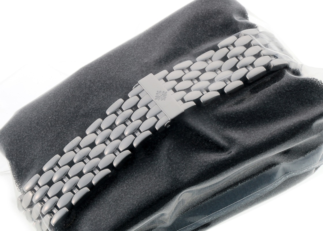 パテックフィリップの「プチコンプリケーション 5085/1A」が入荷しました。 5712 ノーチラスの登場で、一般にも名が知れることにになった「プチコンプリケーション」。 その系譜を遡ると、モデル番号 5015、5054、5055と歩み、そして今回入荷したステンレスブレスレットモデルの5085/1Aこそが、パテックフィリップのオールドファンが通称「プチコン」と呼ぶ最たるものではないでしょうか。 文字盤に配置された4つのインジケーターは、スモールセコンド・パワーリザーブ・ポインターデイト・ムーンフェイズです。 この4つがバランスよく、芸術的・機能的に配置され、コンパクトな世界に実現できたのは流石パテックフィリップといえます。後の3712や5712にも採用されたことはいかに完成されたデザインだったかを物語っております。 袖口から最初に覗くのはスモールセコンドです。 身に着けたオーナーが僅かな所作でその動きを確かめることができます。 また、同じステンレスのノーチラスやアクアノートがスポーツよりであるのに対し、こちらはドレスとしてもスポーツとしても愛用できる希少なモデルでもあります。 ムーブメントはキャリバー 240 PS IRM C LUを搭載。 マイクロローターを用いた美しい自動巻きムーブメントはシースルーバックからご覧いただけます。 現在のパテックフィリップでは、ステンレス製時計の生産を全体の25~30%に制限することを述べており、過去のモデルではありますが、今後ますます希少性が高まる可能性を秘めております。 提携工房にて外装の傷取り(研磨)後に、パテックフィリップジャパンにてコンプリートサービス(分解掃除)、ガラス交換をおこなっています。 メンテナンス後完全な未開封状態ですので、真空パックを開封するところから 新オーナーとしての体験をスタートしていただけます。 パテックフィリップの修理明細書のコピーと携帯ケースが付属します。 さらに詳しい内容を確認されたい方は、お気軽にお問い合せください。 管理用:owp952