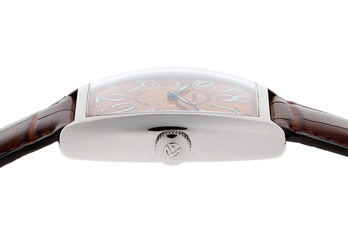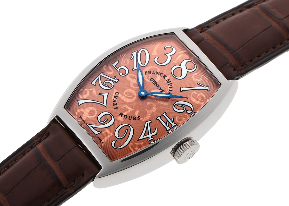 フランクミュラーより「トノーカーベックス クレイジーアワーズ」が入荷しました。 伝統と革新を重んじながら、独自のスタイルを追求する稀代の天才時計技師フランクミュラー。 独創的な発想で数多くの個性豊かな時計を輩出してきました。 こちらはインデックスの配置が通常の12時間表示とは大きく異なるクレイジーアワーズ。 一見するとバラバラに見える数字は規則的に配置されており、ジャンピングアワーによって次の数字のもとへ時針は毎正時にジャンプします。 こちらはヴィンテージテイストの雰囲気を感じさせるコッパーダイアル仕様。 銅色の文字盤にルミノバ夜光が煌めき、ブラウンレザーストラップとの調和により高級感を演出しています。 時の概念を覆すクレイジーアワーズ。お使いになられてこそ楽しめるモデルです。 商品状態は、当店入荷後に簡易仕上げ(ライトポリッシュ)を実施。 ストラップは未使用品に交換いたしましたので、綺麗な状態です。 付属品は、箱・保証書がございます。 さらに詳しい内容を確認されたい方は、お気軽にお問い合せ下さい。 管理用:ii-589