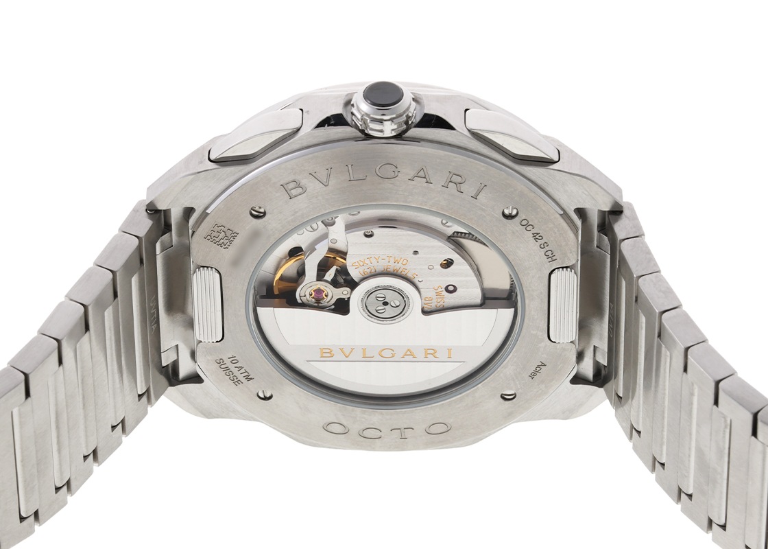 ブルガリの「オクト ローマ」が入荷しました。 ブルガリは、永遠の都市ローマを象徴するイタリアの代表的なジュエラーであると同時に、現在ではスイスでも屈指の技術力を誇る高級時計のマニュファクチュールです。 2000年に高級時計メゾンである「ジェラルド・ジェンタ」「ダニエル・ロート」を傘下におさめたことが、ブルガリの技術力を飛躍させる契機となりました。 「オクト」は、傘下におさめた「ジェラルド・ジェンタ」から登場した「ジェラルド・ジェンタ オクト」をブルガリが再構築し、そのDNAを受け継いだコレクションとなっております。 オクトとは八角形を意味し、調和と完璧さを象徴する古代のシンボルです。 ローマのインスピレーション、イタリアのデザイン、そしてスイスの時計製造技術が融合した現代的なスタイルの象徴的モデルであり、ブルガリのアイコンと呼ぶに相応しいモデルです。 こちらは自動巻きのクロノグラフです。 洗練されたクルドパリ仕上げのブラックダイアルは直感的にクロノグラフを読み取ることができます。 サテン仕上げとポリッシュ仕上げを施した42mmのステンレススティール製ケースと、同仕上げのブレスレットは大変手間の掛かる構造であり、その仕上げの技術はジュエラーとしてのブルガリの高い技術が証明されています。 ムーブメントは自社製キャリバー BVL399、パワーリザーブは42時間、100m防水です。 提携工房にて外装の傷取り(研磨)をおこなった後に、ブルガリにてベーシックサ-ビス(機械点検、調整、防水検査)をおこなっています。 ベゼルの10時位置、2時位置のラグに取りきれない傷がみられます。 2023年6月に販売がされた商品で、ブルガリの箱(外箱に破れあり、内箱は壊れあり)、保証書、未使用の交換用のストラップ・尾錠が付属します。 腕周りは約17.5cmの方まで対応します。 さらに詳しい内容を確認されたい方はお問い合わせください。 管理用:owp283
