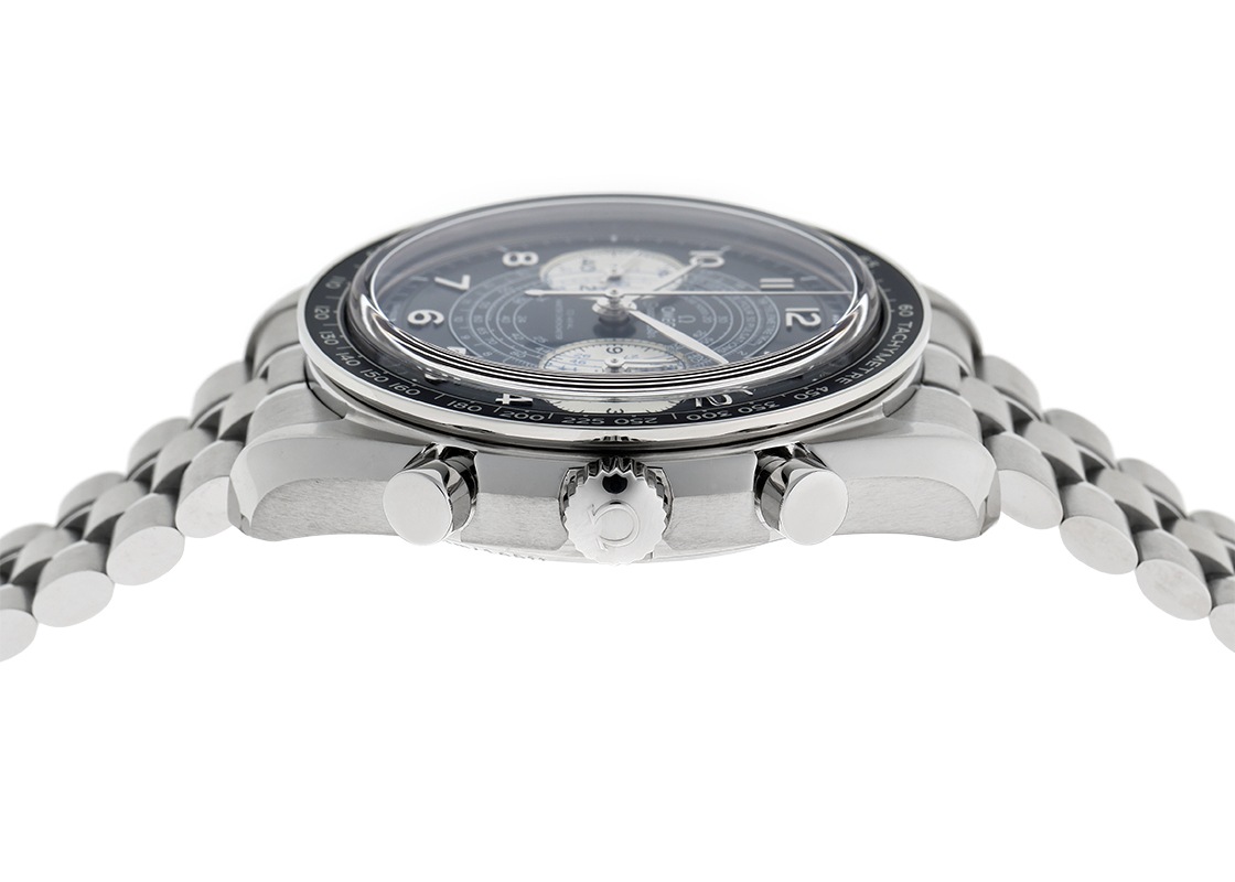 オメガ 「スピードマスター クロノスコープ コーアクシャル マスタークロノメーター」の未使用品が入荷しました。 時計史を代表するクロノグラフと言えば、ロレックスの「デイトナ」、もう一つはオメガの「スピードマスター」でしょう。 1957年に誕生したスピードマスターは、本来モータースポーツでの計測を前提に開発された手巻き式のクロノグラフでした。 1965年、NASAに正式に採用された際、スピードマスターだけが全11項目あるテストにおいて満足できる性能を発揮したと判断されました。ちなみに最終テストに残ったのは、オメガ・ロレックス・ロンジンと言われています。 今回入荷の「スピードマスター クロノスコープ」は、名機33.3CHRO が搭載されていた1930~1940年代のスネイルデザインからインスピレーションを得て、現代に生まれ変わった2カウンターのスピードマスターです。 まず目を引くのはサークル状のスネイルデザインです。ベゼルにタキメーター(速度計測)、文字盤にテレメーター(距離計測)とパルスメーター(脈拍計測)が配されています。 また、2カウンターのクロノグラフは、9時位置にスモールセコンド、3時位置に同軸上の60分および12時間積算計を備え、サブダイヤル2つでスリーカウンターの役目を果たしており、オメガらしいハイスペックを誇るクロノグラフとなっております。 搭載されるムーブメントはマスタークロノメーター認証の、手巻き式コーアクシャルクロノグラフ キャリバー9908です。 現在、オメガとチューダーしか認証を得ていないマスタークロノメーターは、これまでのクロノメーターの上をいくものです。パワーリザーブは60時間を擁します。 文字盤はシルバーカラーのサブダイアルを備えた青色で、リーフ型の針とアラビア数字のアプライトインデックスにはロジウム仕上げが施されています。 こちらは駒調整のされた未使用品です。 さらに詳しい内容を確認されたい方は、お気軽にお問い合せください。 管理用:owp250