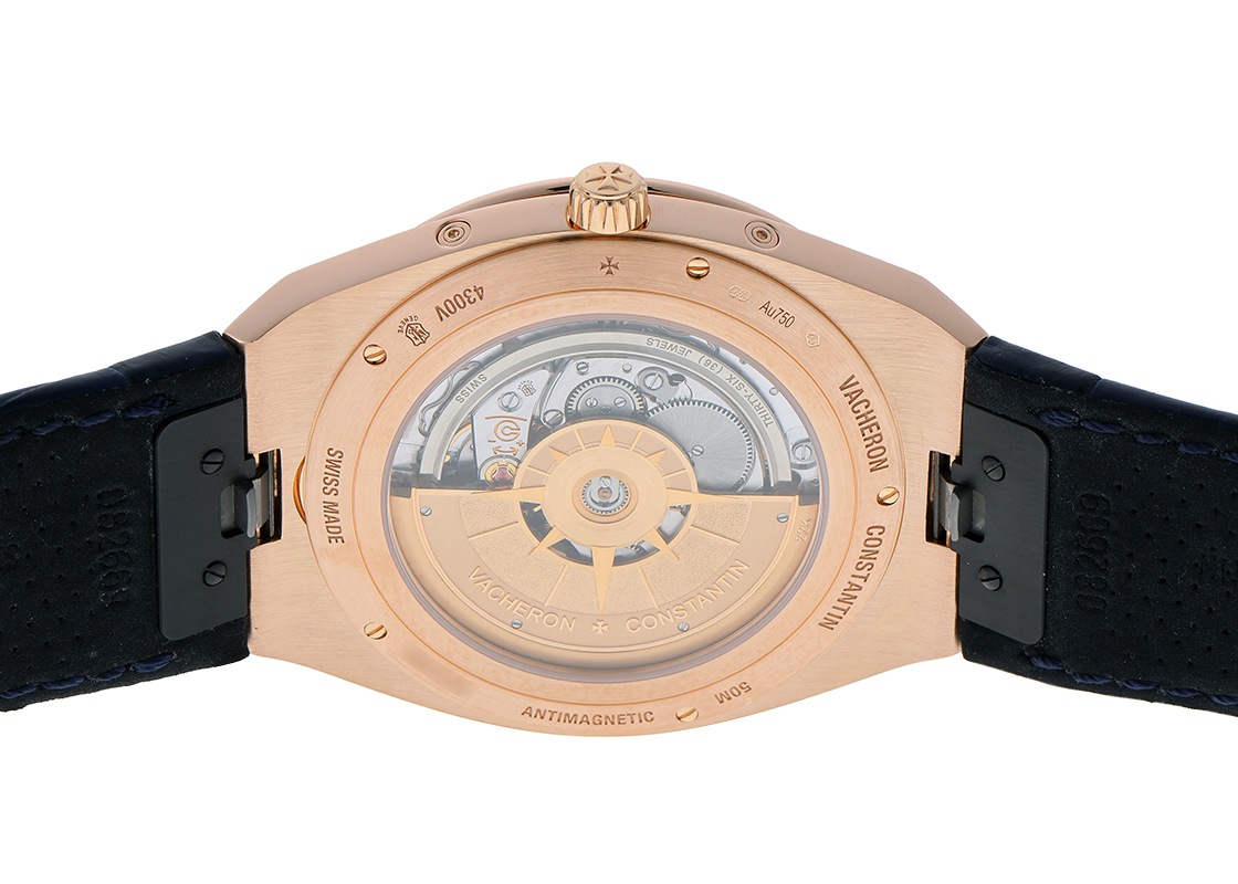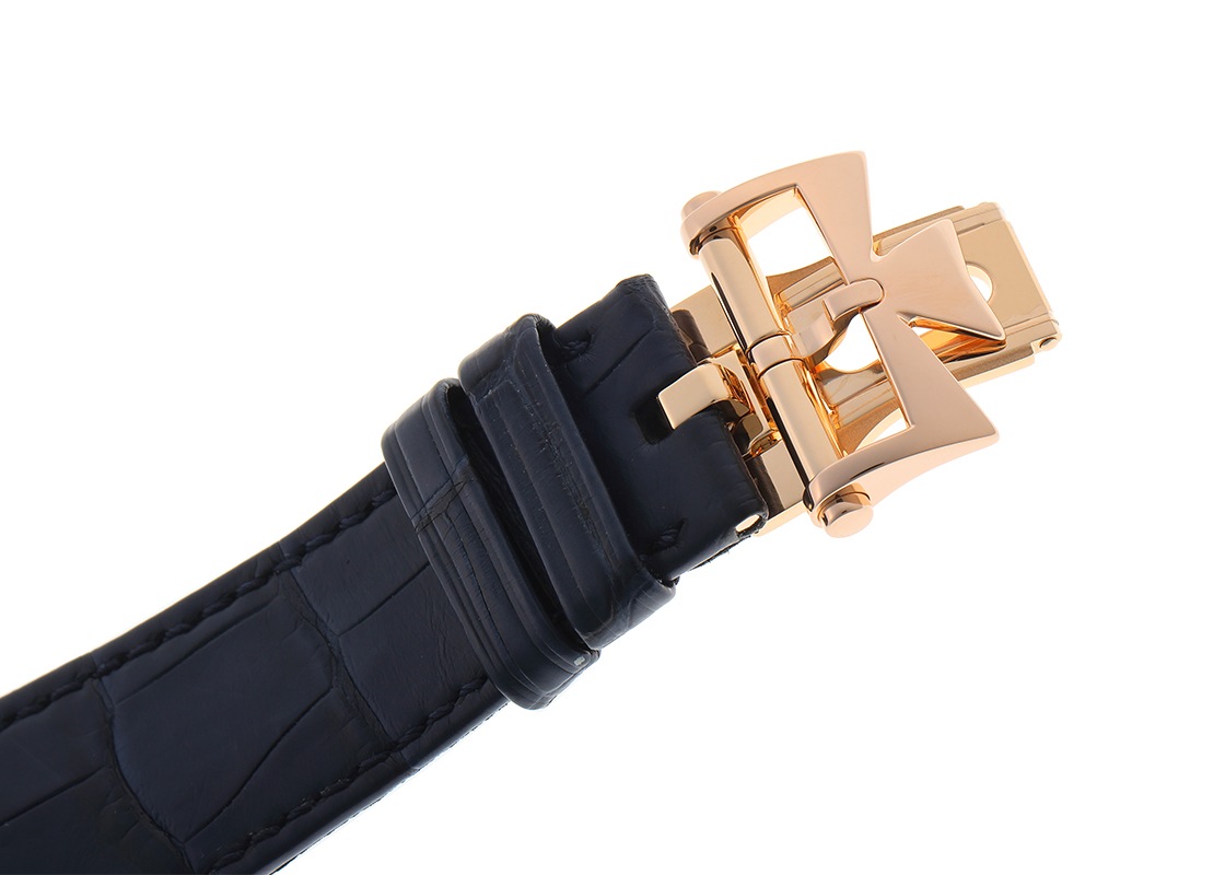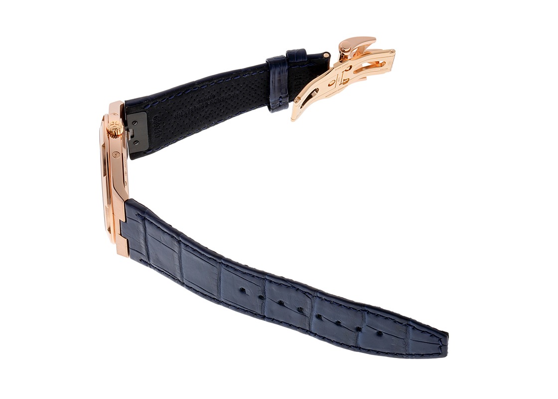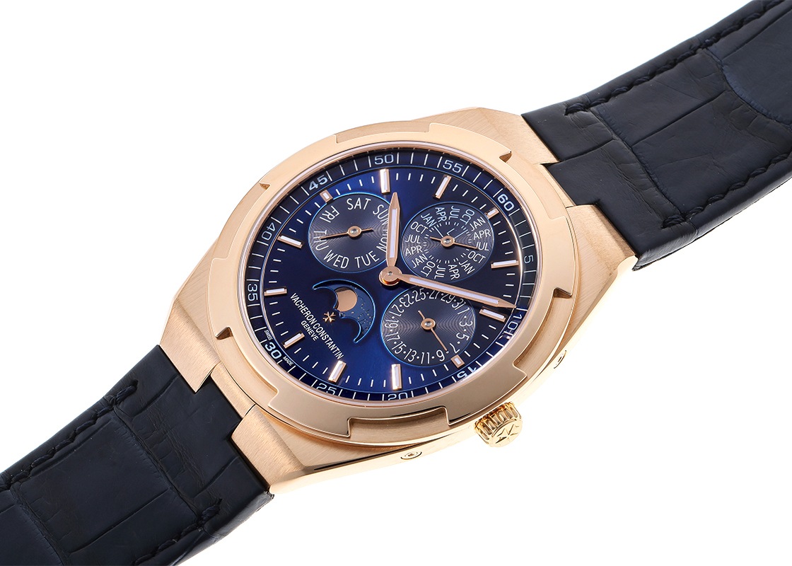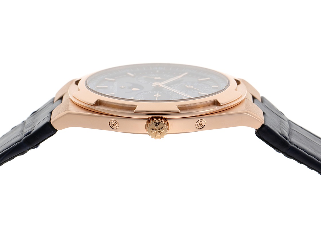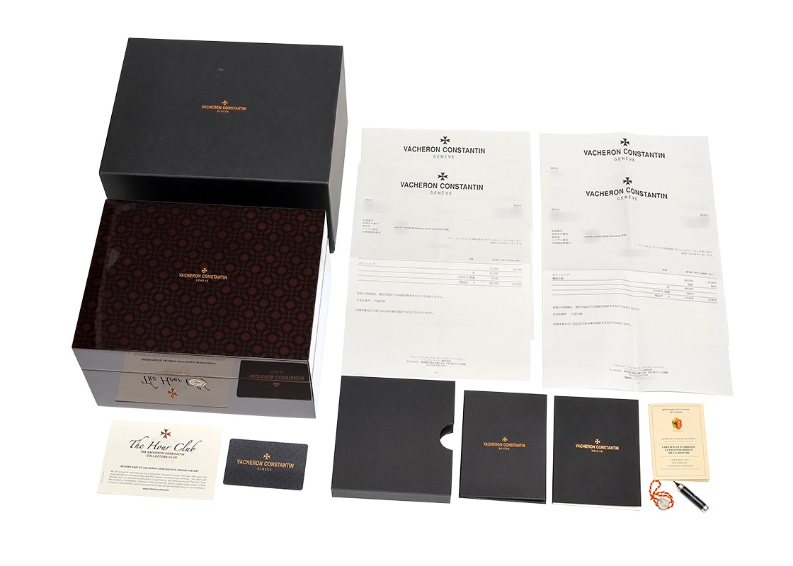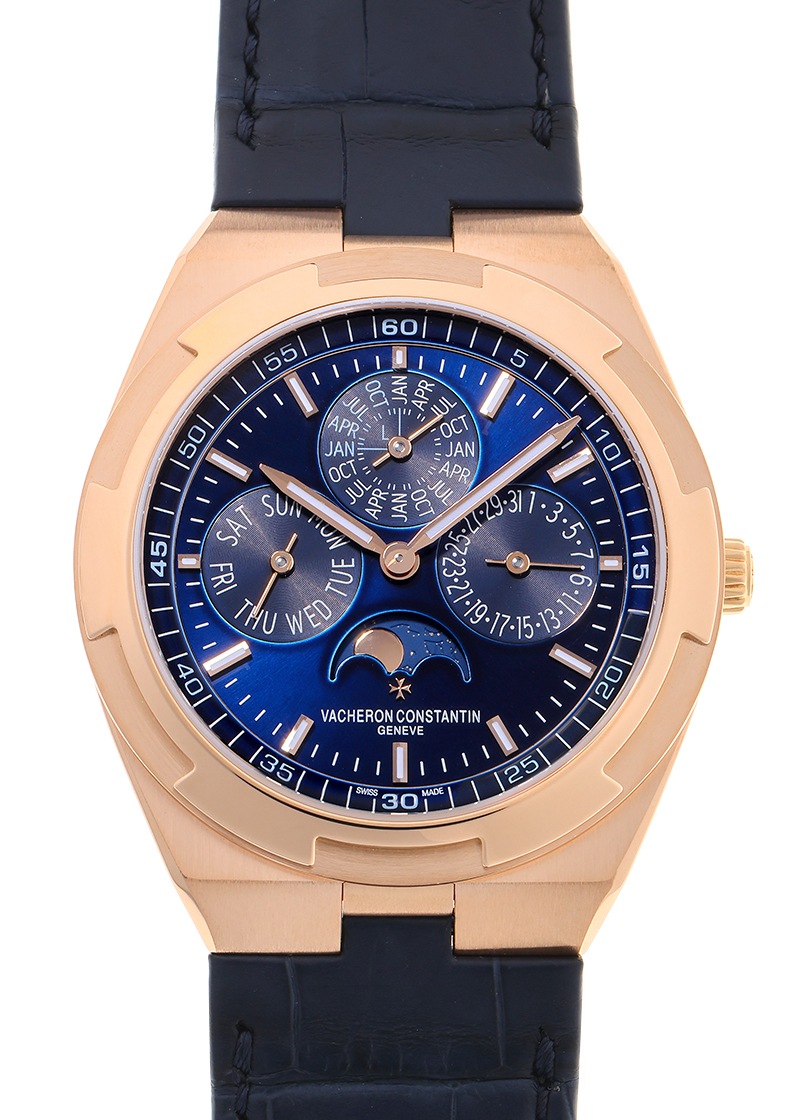 ヴァシュロンコンスタンタンより「オーヴァーシーズ エクストラフラット パーペチュアルカレンダー」が入荷しました。 オーヴァーシーズはその名の通り旅をコンセプトに、スポーツウォッチの実用性と旅先の様々なシーンで活用できるようにワンタッチで付替えできるストラップが特徴です。 1本の時計でどんな服装にもよく似合う贅沢な時間を演出してくれます。 こちらは2019年に登場、ピンクゴールド製のケースにブルーカラーのダイヤルを備え、永久カレンダーを搭載したモデルです。 エクストラフラットの名にふさわしい、わずか8.1mmのケースに納められるのは「キャリバー 1120 QP/1」。 時刻、日付、曜日、月、閏年、ムーンフェイズを2100年まで調整不要なパーペチュアルカレンダー機構が搭載された4.05mm厚の超薄型自動巻ムーブメントです。 シースルーバックからは方位図がかたどられた22Kゴールド製のローターや、ジュネーブシール取得の美しいムーブメントを見ることができます。 パワーリザーブは約40時間です。 ヴァシュロンコンスタンタンにて機械の点検と外装の傷取り(研磨)が完了しております。 一部ベゼルと裏蓋に取り切れない傷がございますが、視認性に問題は無くご使用いただけます。 ヴァシュロンコンスタンタンの箱と保証書(2020年8月販売)、修理明細書、調整ピン、新品のラバーストラップが付属します。 ラバーストラップはワンタッチで付け替えが可能で、シチュエーションに合わせて異なるスタイルをお楽しみいただけます。 さらに詳しい内容を確認されたい方は、お気軽にお問い合せください。 管理用:owp332