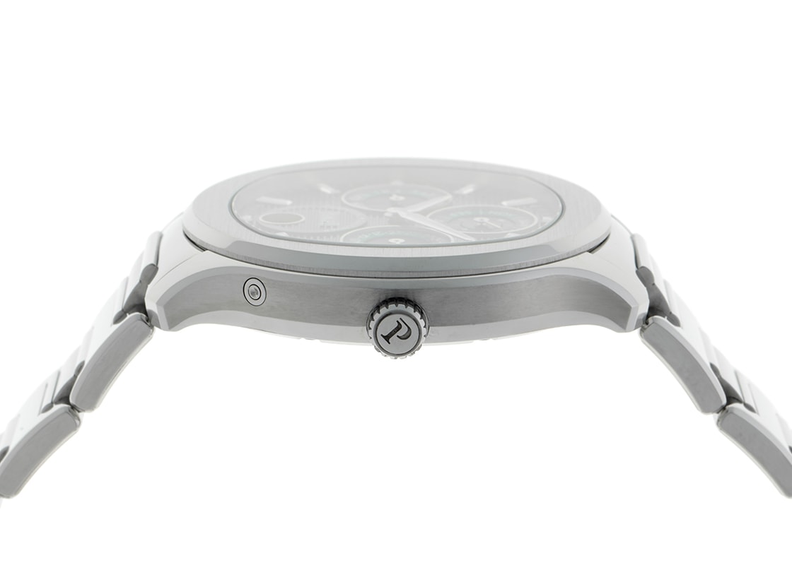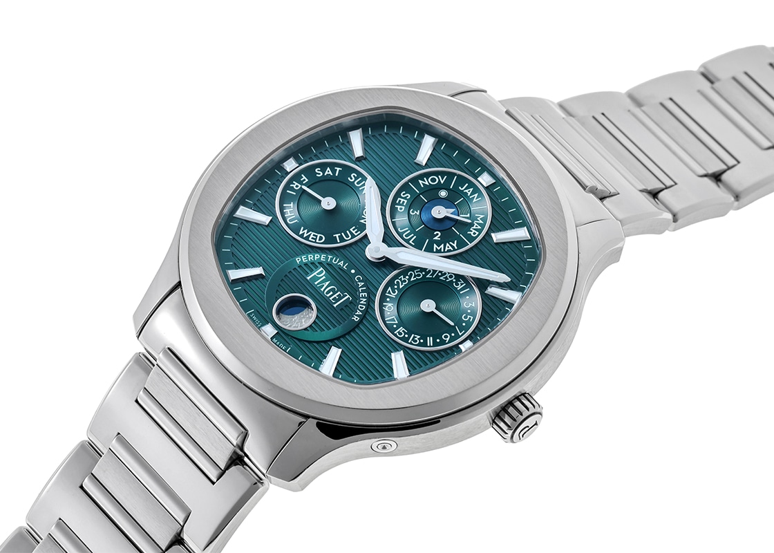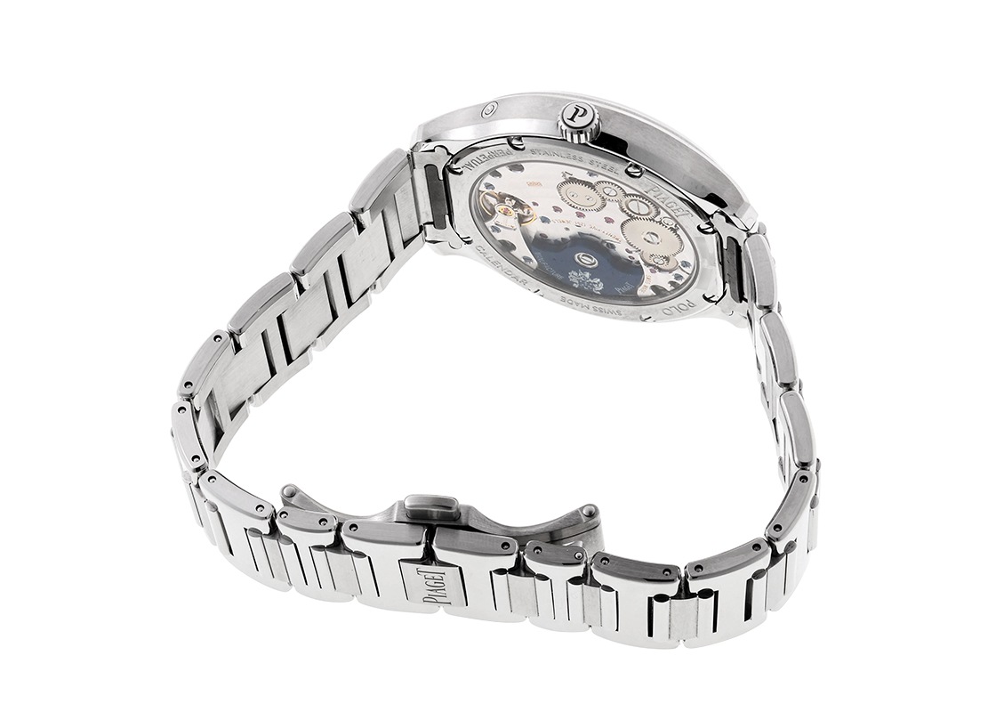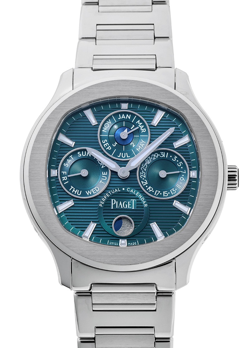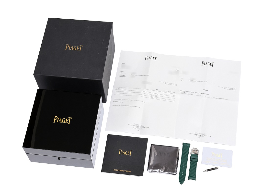 ピアジェから、2023年発表の「ポロ パーペチュアル カレンダー ウルトラシン」が入荷しました。 1874年、時計のムーブメント製造からスタートしたピアジェ。 150年の歴史と薄型時計を得意とする実力は折り紙付きです。 「ポロ」は、各社からケースとブレスレットが一体となったラグジュアリースポーツモデルが登場していた1979年に誕生しています。 ラウンドとクッションから成るシェイプインシェイプが特徴的です。 こちらは、シリーズ初となる永久カレンダーを搭載したモデルです。 ムーブメントにマイクロローター式で厚みが2.35mmのキャリバー1255Pが搭載されており、ケース自体の厚みは僅か8.65mmです。 パワーリザーブは42時間です。 ダークエメラルドグリーンの文字盤は、メタリックでかつ深い緑が唯一無二で非常に美しいです。 インダイヤルの枠にはチタンが使用され、青みのあるシルバーが文字盤にマッチしています。 ブレスレットには、古代ギリシャ建築からヒントを得たというゴドロン装飾が採用されており、初期モデルの外装を引き継いでいます。 付属する未使用のラバーベルトにもゴドロン装飾がデザインされています。 シースルーバックの裏蓋からは、地板のペルラージュ仕上げとローター部を中心としたコートドジュネーブをご覧いただけます。 商品状態は、外装の傷取り(研磨)を実施しておりとても綺麗な状態です。 2025年3月にピアジェにてコンプリートサービス(保証期間内)を行っています。 2024年3月に販売がされた商品で、ピアジェの箱、保証書、修理明細書が付属します。 2032年まで延長保証の登録が済んでおりますのでよりご安心いただけます。 ブレスレットの駒はすべて揃っており、腕周りは約20cmの方まで対応します。 さらに詳しい内容を確認されたい方は、お気軽にお問い合せください。 管理用:owp260