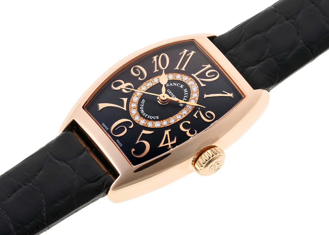 フランクミュラーの「トノーカーベックス」が入荷しました。 フランクミュラーが自ら製作したトノーカーベックス。1992年のブランド創業からフランクミュラーのアイコンモデルの一つとして永く愛されています。 立体的なフォルムは、緻密な計算がされた美しい曲線を見出すことで完璧なバランスを保っています。 20世紀のアールデコ様式を取り入れつつも現代的でスタイリッシュです。 こちらは定番のレディースサイズ。 ピンクゴールドのケースとダイヤルの中心にセッティングされたダイヤモンドが華やかな光輝きを放ちます。 自動巻きのムーブメントを搭載して、提携工房にて機械点検、調整、外装の傷取り(研磨)が完了しています。 ストラップはカシス製のクロコダイルベルトを取付けています。 国内の正規店で2016年に販売がされた商品で、フランクミュラーの箱、保証書が付属します。 詳しい内容を確認されたい方はお気軽にお問い合せください。 管理用:owp396