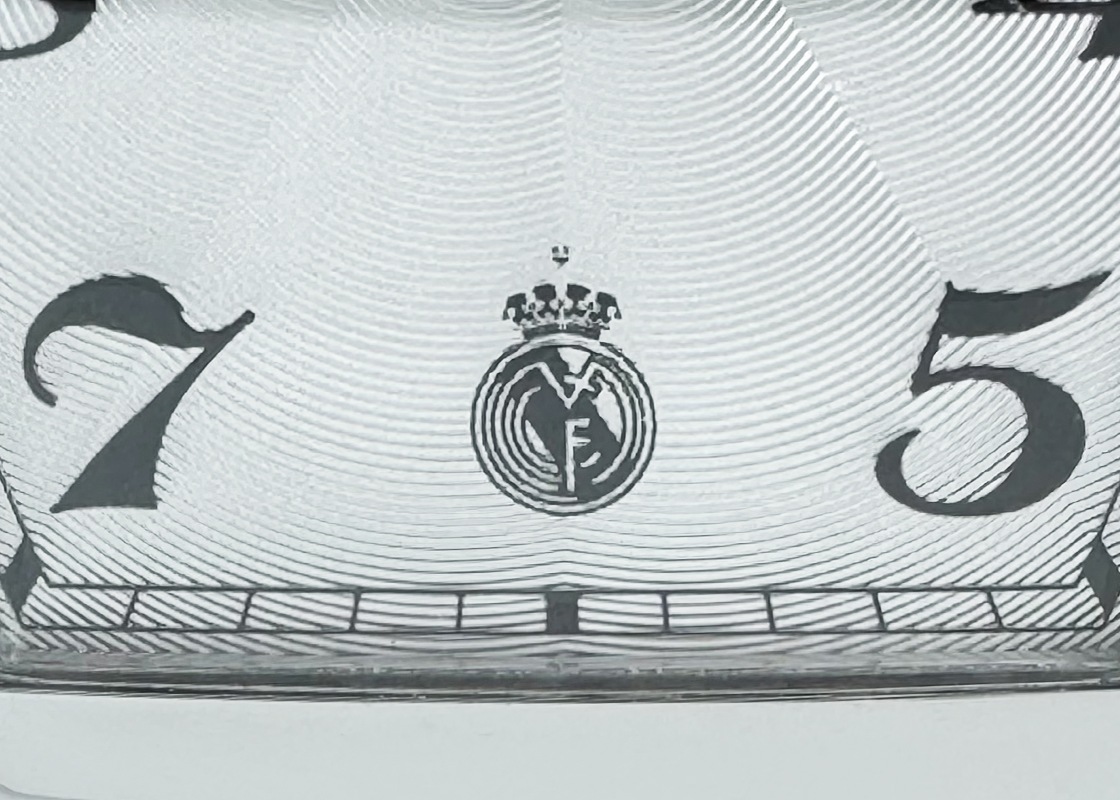 文字盤6時位置にレアル・マドリードのエンブレムがプリントされ裏蓋に5850SC Real madridと刻印が入った特別仕様になっています。