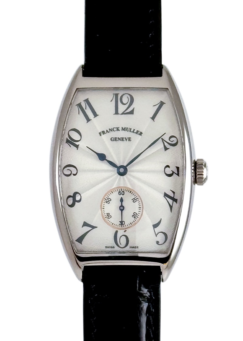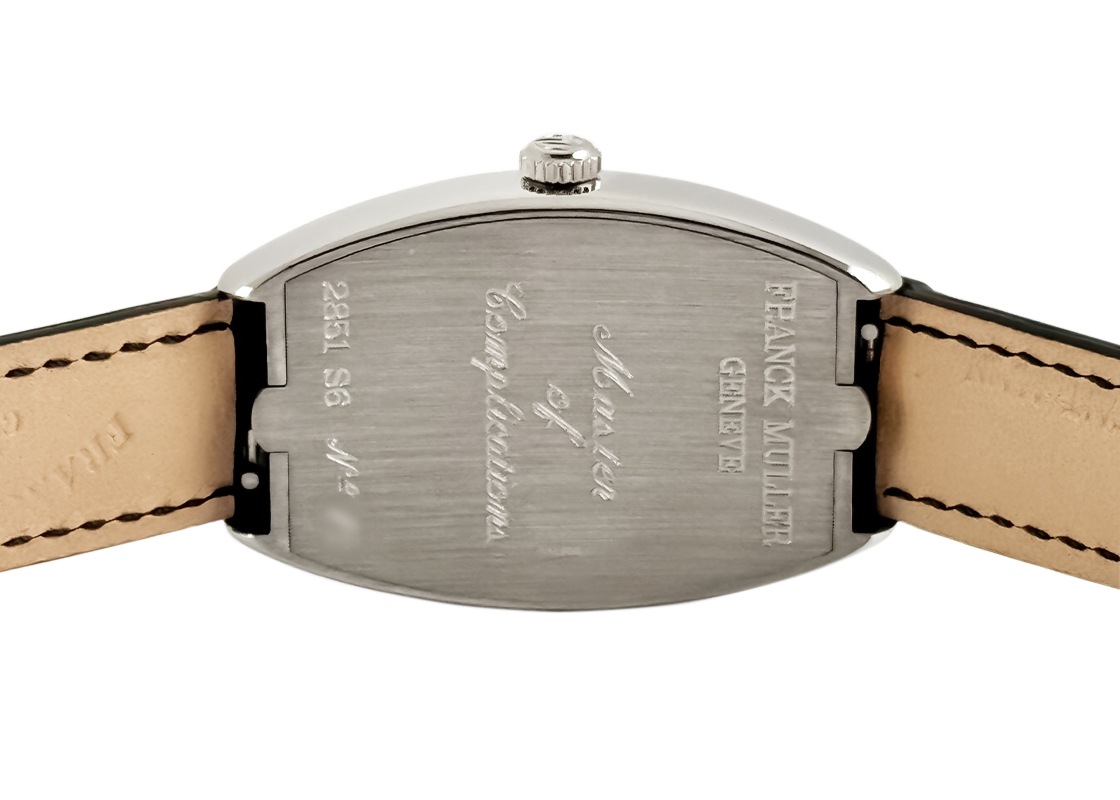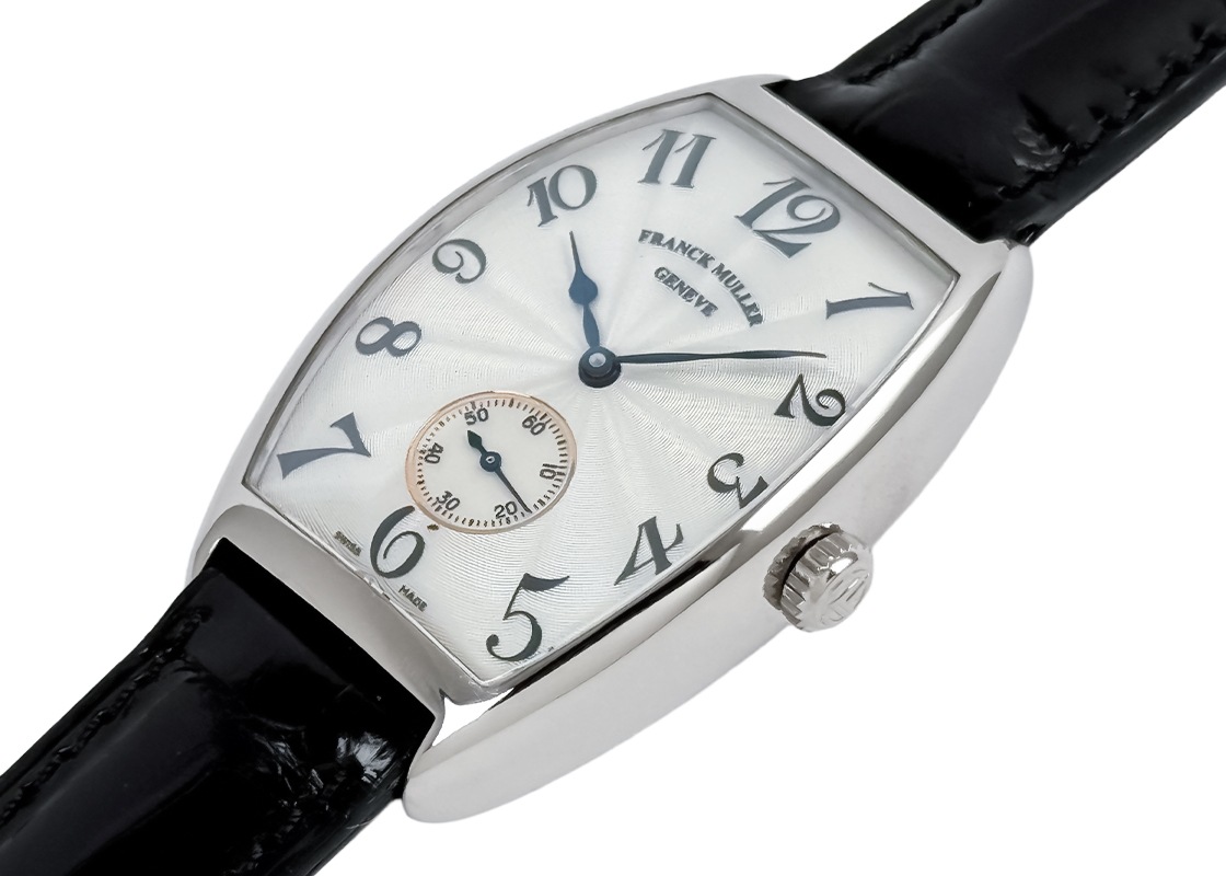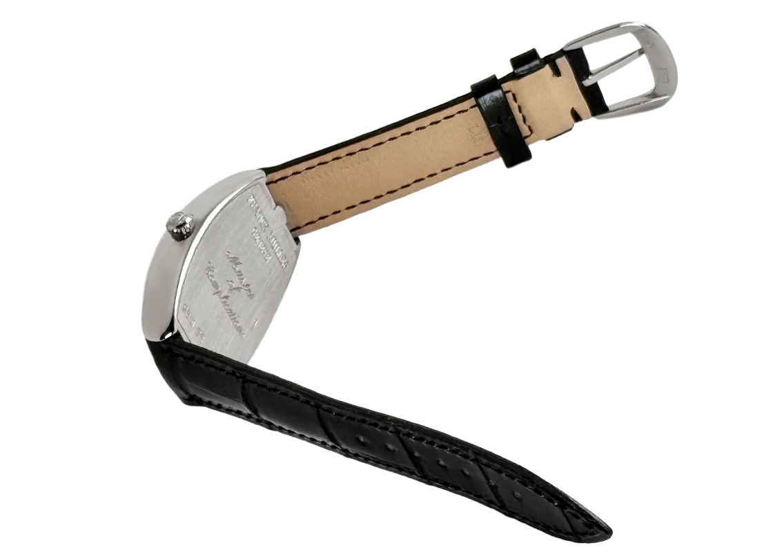 フランクミュラーより、ブランド創成期の「オリジナル トノウカーベックス」が入荷いたしました。 1992年に発表されたトノウカーベックスの原点ともなるRef.2851 こちらは6時位置にのスモールセコンドを配した「Ref.2851S6」です。 特徴として、現行モデルより縦横の対比が細く長くシェイプ。 裏蓋を止めるビスの位置が、ベルトの付け根があたるケース上下の側面から固定。 特筆すべき点として、型番が2850から2851に移行される最初期の製造個体であるため、裏蓋のフランクミュラー刻印がストレート表記の2850仕様となっています。 デザイン面に於いては、アールデコの繊細なギョーシェ文字盤上に、創成期の小さ目なビザン数字と華奢なブルースチール針が見事にマッチング。クラシックながらも艶のある、とても雰囲気のよい仕上がりです。 また、全てのラインが曲線で構成されているトノウカーベックスに見られるボンベ文字盤のカーブにビザン数字がレタリングされていることで、腕に纏ったような一体感を生み、時計の美しさを体現しています。 商品状態は、2025年にメンテナンス実施済み、新品ストラップに交換済みのグッドコンディションです。 時計本体のみで付属品がございませんので、オリジナルBOXをご用意いたします。 さらに詳しい内容を確認されたい方はお気軽にお問い合せ下さい。 管理用:ii-605
