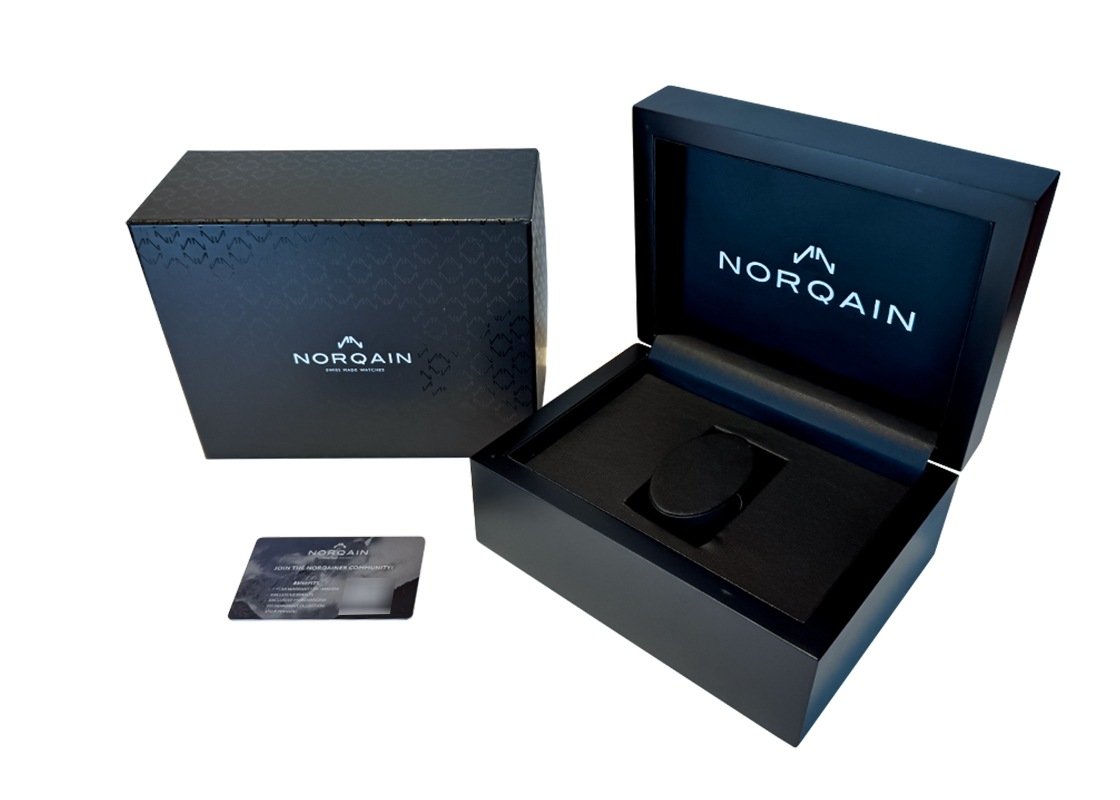 ノルケインより「インディペンデンス ワイルド ワン」のターコイズカラーの未使用品が入荷しました。 設立2018年の新鋭ブランドであるノルケインは、スイス ニドーに拠点を置きながら企業に属さず完全なる家族経営で独立されたブランドです。 2022年には数々のブランドを先導して成功に導いたジャン-クロード・ビバー氏が経営に加わり、新しく開発されたのが「ワイルド ワン」です。 このモデルの製作のためにノルケインが独自で開発した「NORTEQ(ノルテック)」は、航空宇宙産業にも使われているカーボンファイバーとバイオ由来原料の高性能ポリマーマトリックスを原料にした新素材になります。 チタンの約1/3という驚異的な軽さでありながら耐衝撃性能にも優れており、200mもの防水性能を備える究極のスポーツウォッチといえます。 当該モデルの「ワイルドワン スケルトン」は、建築の梁構造の原理に基づいた独自の構造によって、従来のスケルトンモデルの弱点であった耐久性が格段に飛躍しています。 COSC公認のクロノメーター認定を取得しているキャリバーNN08Sが搭載されており、パワーリザーブは41時間ございます。 格納したチタン製の容器をプロテクトするラバー製のショックアブソーバーやラバーストラップには、鮮やかなターコイズブルーが採用されており、ひと際存在感を放つモデルです。 ケースサイドには、全モデルに採用されているノルケインプレートが配置され、ブランドならではの特別仕様となっています。 腕周りは20cmの方まで対応します。 ノルケインの箱と保証書が付属いたします。 さらに詳しい内容を確認されたい方は、お気軽にお問い合せください。 管理用:owp878