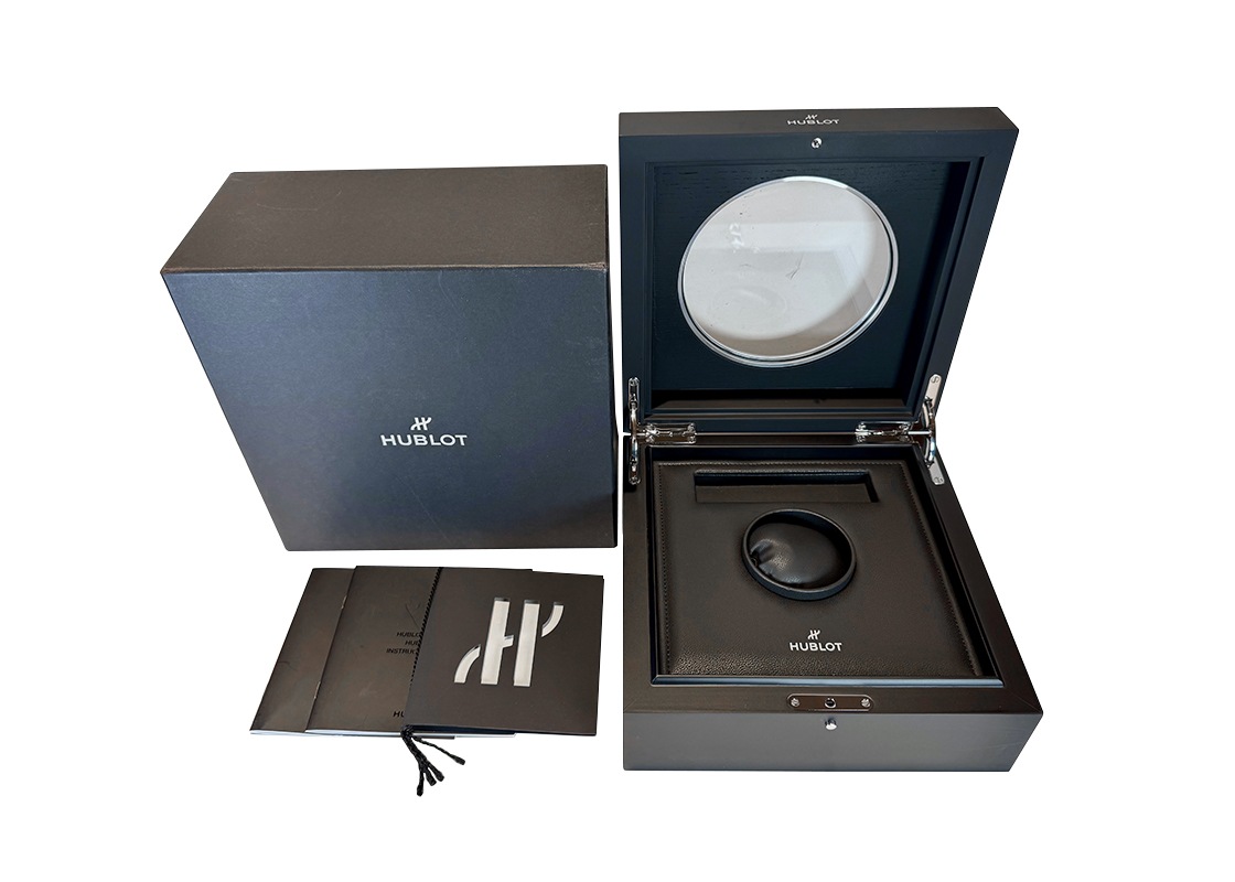 ウブロより「クラシックフュージョン トゥールビヨン スペシャルモデル」が入荷しました。 “融合”がテーマのクラシックフュージョン。これまで新しい素材や、様々なブランドとの革新的な融合を次々と果たしてきました。 こちらは、2021年からダイアルカラーを限定して生産されているスペシャルなトゥールビヨンです。 人気の火付け役となった本機種はブラックラッカーダイアルのオールブラック仕様 光沢感のあるケースと マットな質感のベゼルに見られるように、各パーツを異なる質感にすることでコントラストが生まれ、立体的かつ高級感のある佇まいです。 6時位置には機械式時計の三大複雑機構トゥールビヨンのキャリッジが鎮座 脱進機を回転させることで姿勢差による時計の誤差を打ち消し精度の向上を図る機構はまさに、機械式時計の機能美を魅せてくれます。 更には世界で僅か18本という希少性も満足感をもたらせてくれます。 搭載されるのは 自社キャリバーHUB6010、5日間のロングパワーリザーブは9時位置のインジケーターにより目視にて確認も可能です。 商品状態は、試着程度の未使用レベルの外装。 付属品は 箱・保証書(E-Warranty 2022年5月)がございます。 ウブロにてムーブメント点検も実施しており、コンディションは良好です。 ストラップのサイズは腕回り約20cmまで対応可能です。 さらに詳しい内容を確認されたい方は、お気軽にお問い合せ下さい。 管理用:ii-625