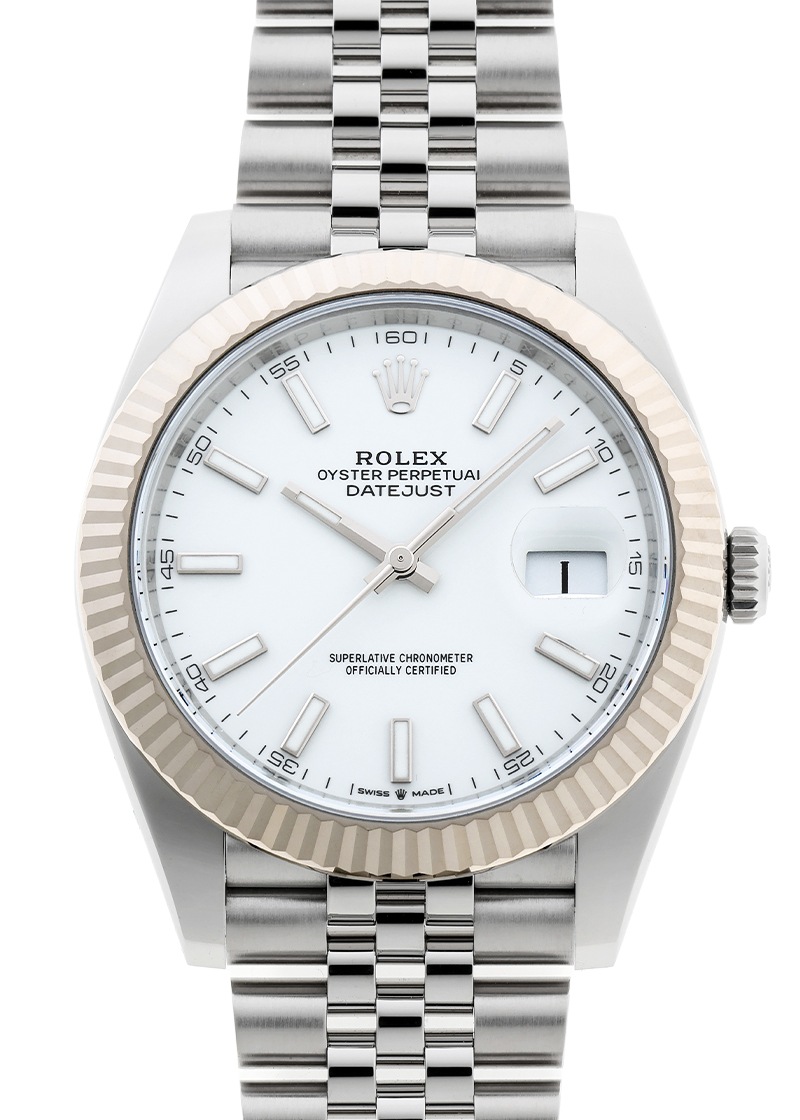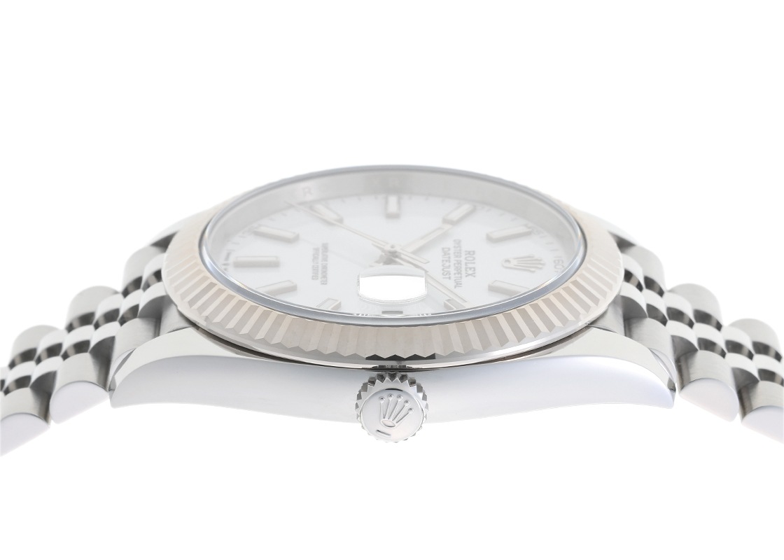 ロレックスより、「オイスター パーペチュアル デイトジャスト41」が入荷いたしました。 誕生以来、そのデザインをほとんど変えることなく受け継がれてきた「デイトジャスト」は、誰もが一目でロレックスとわかる、ブランドを象徴するタイムピースです。 こちらのモデルは、清潔感のある白文字盤にバーインデックスを組み合わせた、シンプルながらも洗練された印象の一本。 さらに、華やかなフルーテッドベゼルとジュビリーブレスレットを備え、上品さと存在感を兼ね備えています。 フルーテッドベゼルはホワイトゴールド製で、光を受けて美しく輝き、ラグジュアリーな雰囲気をいっそう引き立てます。 ムーブメントには、2016年のモデルチェンジより採用された新世代キャリバー3235を搭載しています。 約70時間のパワーリザーブを誇り、クロノメーター認定後にさらに独自の基準をクリアした、ロレックス最高峰の精度と信頼性を実現しています。 国内の正規店にて2025年6月に販売がされた商品で、ロレックスの箱、保証書が付属します。 提携工房にて外観の傷取り(研磨)が完了しており、良好なコンディションです。 ブレスレットの駒はすべて揃っており、腕周り約18.5cmの方まで対応します。 さらに詳しい内容を確認されたい方は、お気軽にお問い合せください。 管理用:owq191