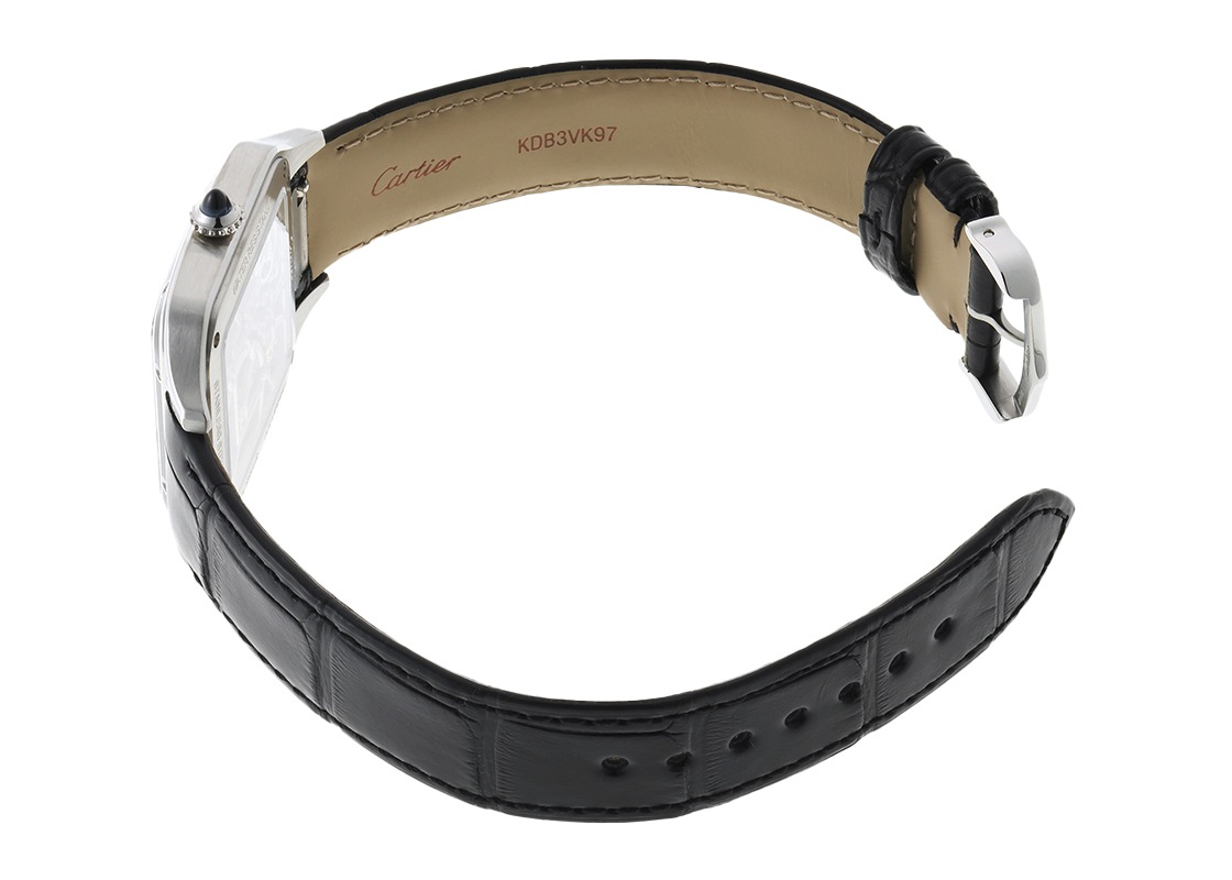 別途新品のミディアムサイズのカルティエ純正クロコダイルベルトも付属し、腕周りのサイズに合わせて付け替えが可能です。