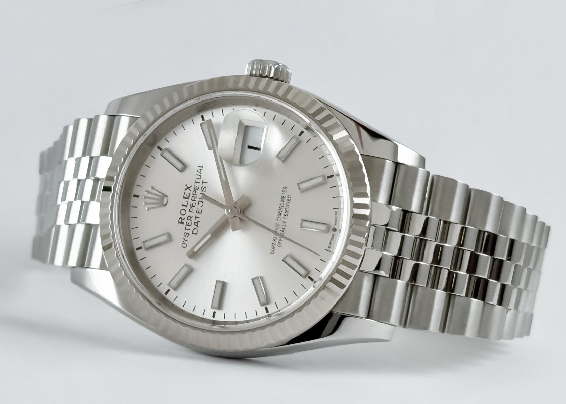 ロレックスより「126234 デイトジャスト36」が入荷いたしました。 ロレックスが誇る三大発明「オイスターケース・パーペチュアル・デイトジャスト」 この三位一体の革新が息づく永遠のアイコン、それが「デイトジャスト」です。 ケースサイズは、腕元に収まりの良い36mm。 フルーテッドベゼルとジュビリーブレスレットの組み合わせは、上品でエレガントな印象を持ちます。 また、シルバーダイヤルは華やかさを持ちつつも主張しすぎず、落ち着いた大人の品格を引き立ててくれるデザインです。 イージーリンクを備えており、ブレスレットの長さを容易に約5mm調整することが可能。 ムーブメントはCal.3235を搭載し、パワーリザーブは約70時間と実用性にも優れています。 時代に左右されないスタイルは、シーンや装いを問わず長くご愛用いただける1本です。 商品状態として、当店入荷後に日本ロレックスにて内部点検・調整を行っております。 目立つ傷も無く綺麗な状態です。 箱・保証書(2021年2月)・ロレックスの修理明細書が付属いたします。 腕周りは約19cmまで対応します。 さらに詳しい内容を確認されたい方は、お気軽にお問い合せ下さい。 管理用: owq181