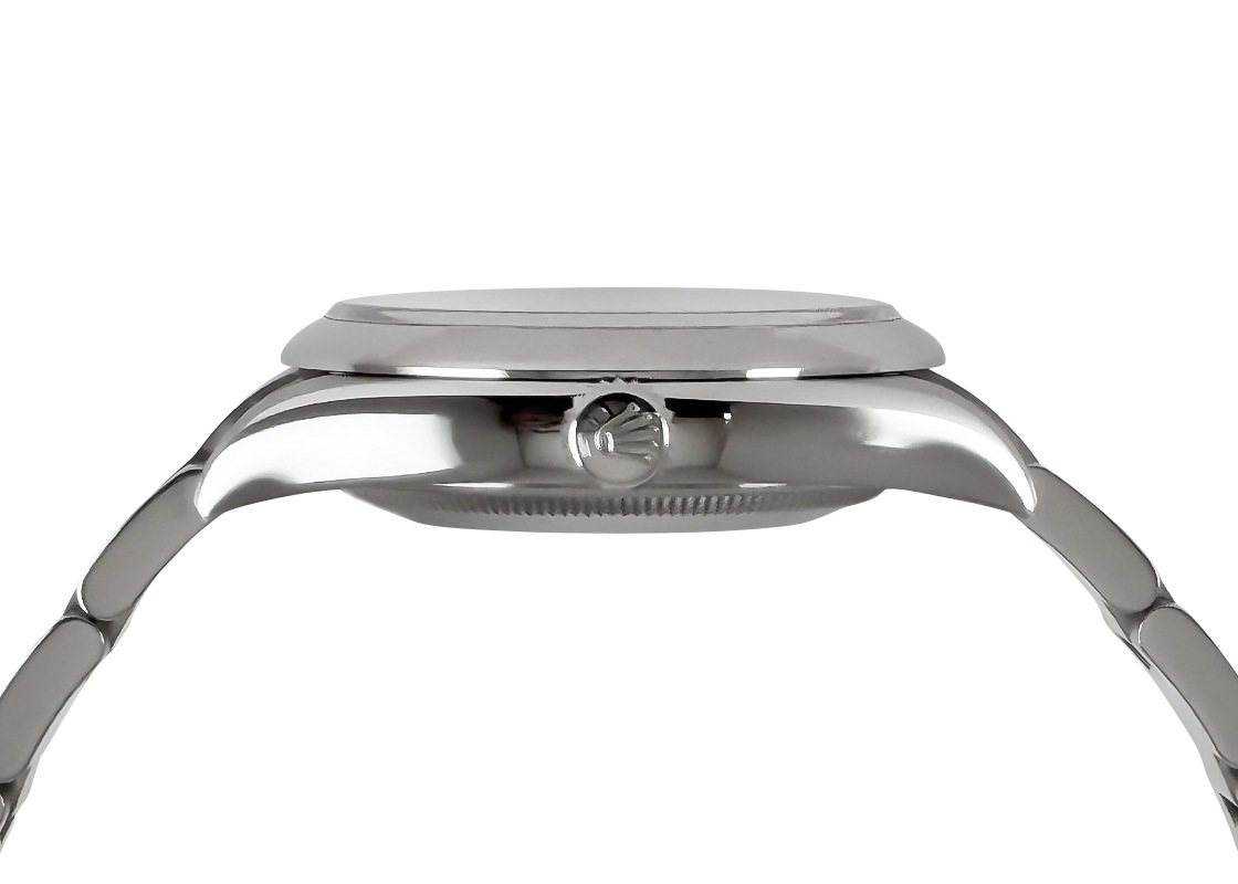 オイスターケースの確かな防水性能と、パーペチュアルローターによる自動巻き機構を備えた本モデルは、ロレックスの原点を体現する一本。