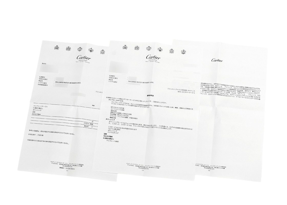 カルティエの箱と保証書はございませんが、修理明細書が付属します。