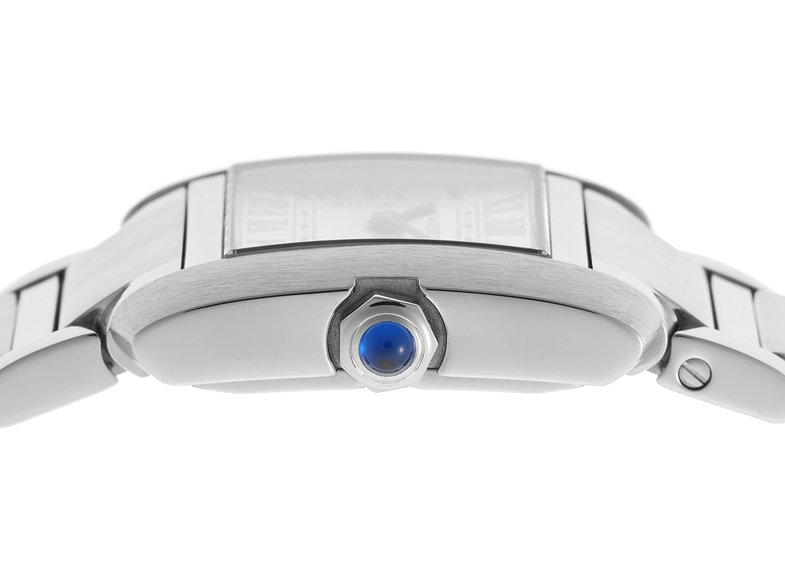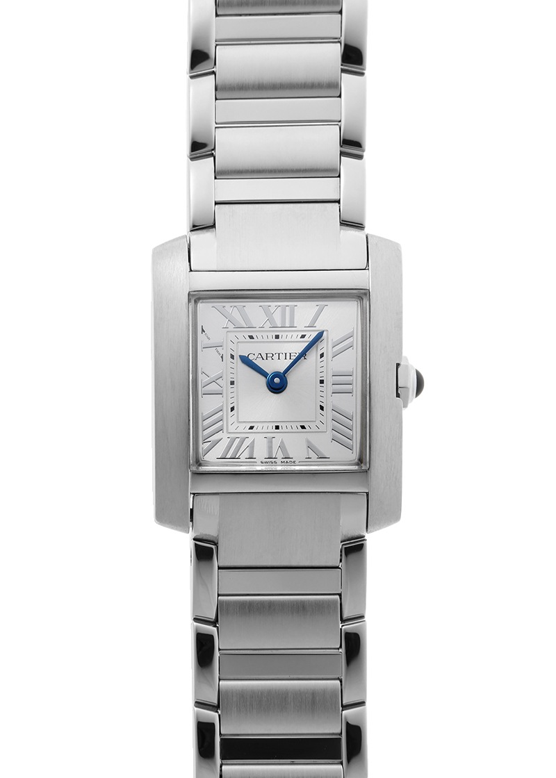 カルティエの定番シリーズ タンクから、「タンク フランセーズ SM」が入荷しました。 一番初めに腕時計を作ったカルティエが、タンクシリーズを初めてデザインしたのが1916年。 戦車を上から見た様子にインスピレーションを受けたタンクは、ラグと一体化した並行に伸びる縦枠が特徴のカルティエを代表するシリーズで、フランセーズをはじめ多くの派生モデルがあります。 タンクフランセーズは1997年発表で四半世紀にわたり発表時のまま展開されてきた人気モデルですが、2023年に初のモデルチェンジが行われ、その新型モデルが入荷しました。 変更点は多岐にわたり、全体的に少し大きく、エッジの効いた骨太な印象となり、ユニセックスとしての仕様を意識した雰囲気となりました。 特徴であるケースとブレスレットの作り込まれた構造も進化。 タンクの特徴である直線的なアールデコ調を軸に、平行な直線と斜めのカットを巧みに利用したデザインは変わらず、ベゼルが太く、ブレスレットも軸が太くなり華奢な印象を与えていた駒のカット部分を無くすことでよりしっかりとした作りに。 それでいてポリッシュ仕上げの光沢をプラスすることで華やかさをプラス。 さらに ホワイト文字盤からサテン仕上げのシルバーへ変更、インデックスは立体的なポリッシュ仕上げで角度によって見え方が異なり非常に高級感があります。 現行品番「WSTA0129」との相違点は、裏蓋のネジ山形状の変更のみです。 外観デザインおよびムーブメントの仕様につきましては、いずれも同一です。 提携工房にて外観の傷取り(研磨)を行っております。 ブレスレットの駒はすべて揃っており、腕周りは約15.5cmの方まで対応します。 2023年3月に販売された商品でカルティエの保証書が付属します。 延長保証の登録が完了しており、2031年3月上旬までカルティエの保証が有効でよりご安心いただけます。 さらに詳しい内容を確認されたい方は、お気軽にお問い合せください。 管理用:owq293