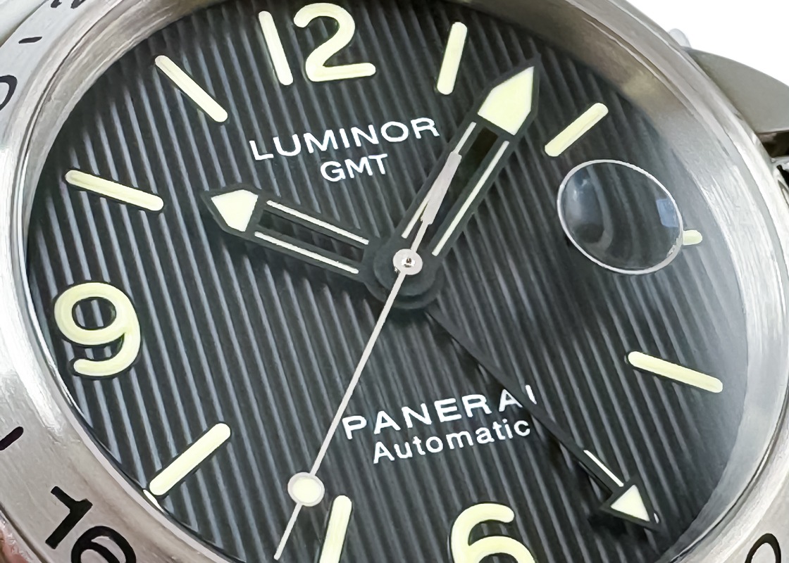 肉抜きされた針のデザインや、長針よりも長く設計されたGMT針、さらに24時間刻印のベゼルなど、現行モデルにはないクラシカルなディテールが魅力です。