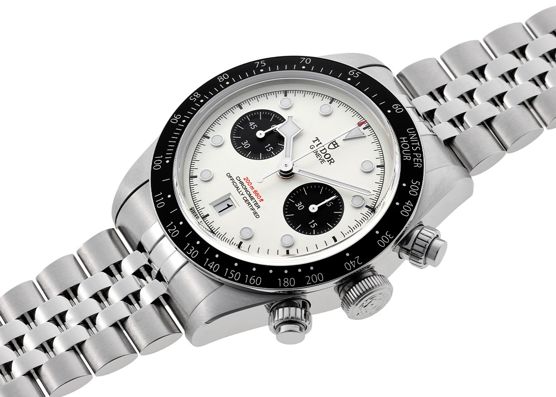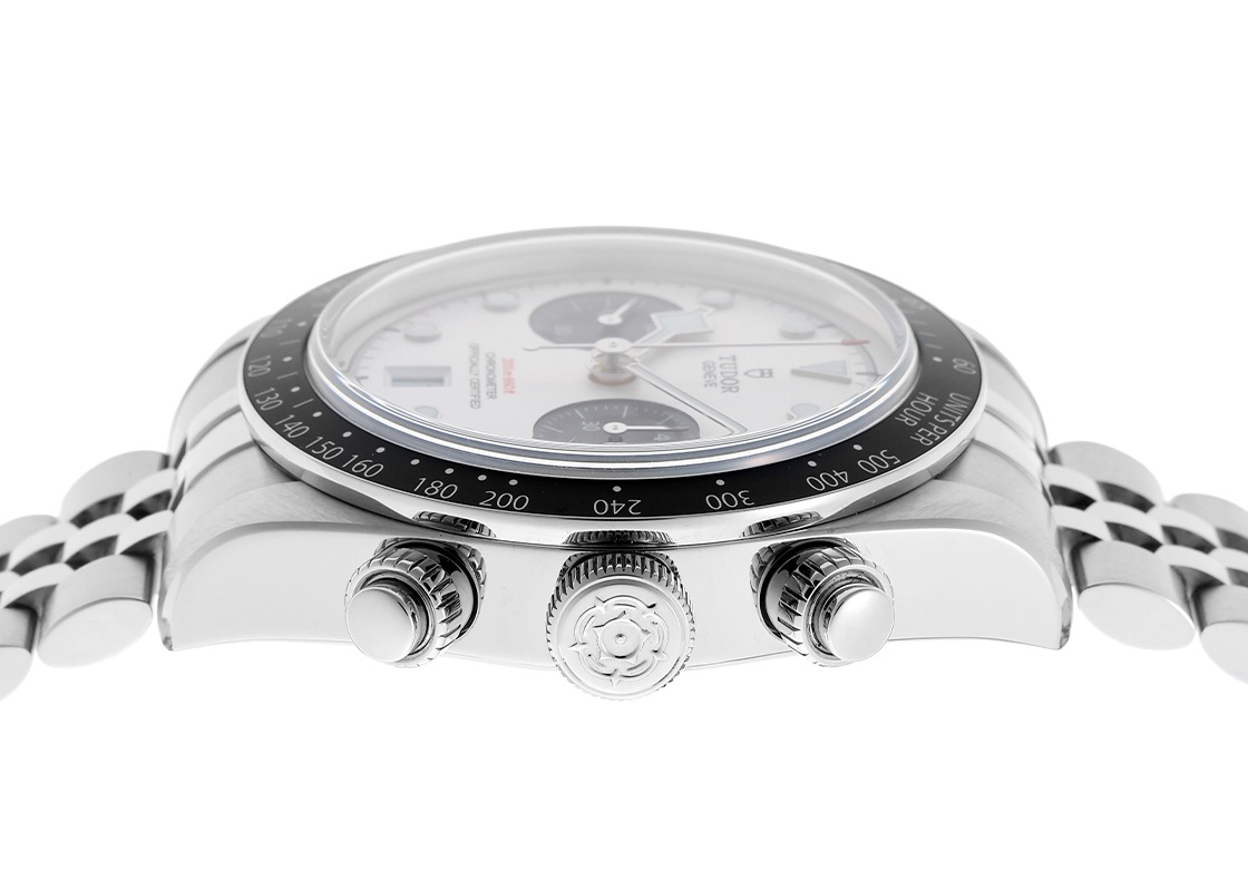 ロレックスのディフュージョンブランドであるチューダーはかつてロレックスと部品を共用し、ロレックスの魅力を良心的な価格で体感できる時計ブランドでした。 2018年に日本初となる正規販売店がオープンしてからその人気はさらに加速し、現在発表されているラインナップは一目でチューダーと判別できるほどの独自性を生み出しており、ロレックスの"ディフュージョンブランド"イメージからの脱却に成功しています。 ブラックベイは2012年の発表以降アップデートをかさね、2021年にチューダー初代クロノグラフの50周年を記念して発表されました。 「Ref.79350」の後継にあたり、ベゼルがステンレススチール製のマットブラックのアルマイト加工ディスクに変更されました。 1958年に200m防水性能に進化した際の大型のねじ込みリューズや、1969年に誕生したチューダー独自のデザインである先端にスクエア型の指標を持つスノーフレーク針が採用されており、ダイバーズウォッチとしての基本的なスペックは健在です。 ブレスレットは1950~60年代に使用されていたロレックス製のリベットブレスレットを模したデザインとなっており、ロレックスのDNAをも感じられるデザインとなっています。 ムーブメントの「Cal.MT5813」はブライトリングのムーブメント「B01」をベースとした自社製ムーブメントを搭載しており、スイス公式クロノメーター検査協会(COSC)の認定を取得、約70時間のロングパワーリザーブを備えているため実用性もお墨付きです。 ブレスレットは腕周り約20cmの方まで対応いたします。 チューダー独自の“T-fit”機構によりワンタッチでブレスレットのサイズを微調整できるのも嬉しいポイントです。 さらに詳しい内容を確認されたい方は、お気軽にお問い合せ下さい。 管理用:owq402