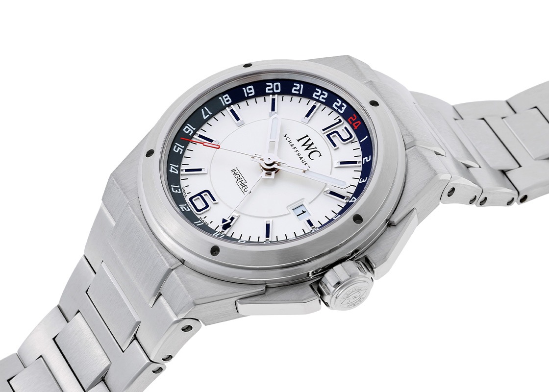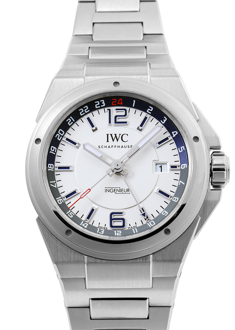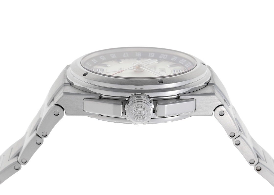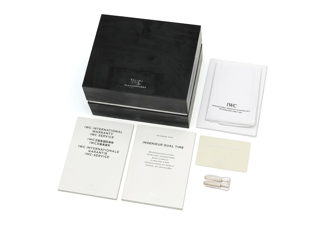 IWCより「インヂュニア デュアルタイム」が入荷いたしました。 インヂュニアは、技術者のための時計として誕生し、高い耐磁性能と堅牢性を備えたIWCを代表するコレクションです。 こちらのモデルは、実用性を重視したインヂュニアの思想に、デュアルタイム機能を組み合わせた機能的な一本です。 ケース径42mmのステンレススティールケースに、クールなホワイトダイヤルを採用。 立体的なインデックスと太めの針には夜光塗料が施され、昼夜を問わず確かな判読性を確保しています。 文字盤外周には24時間表示を配置し、第二時間帯を直感的に把握できるデザインです。 インヂュニアらしい無駄を削ぎ落としたフォルムは、ツールウォッチとしての機能美が際立ち、力強さの中にも洗練された印象を与えます。 ケースとブレスレットの仕上げも実用性を重視し、日常使いに適した堅牢な造りとなっています。 搭載するのは自動巻ムーブメント「キャリバー35720」で、パワーリザーブは約42時間。 デュアルタイム機構により、出張や海外移動の多い方にも心強い仕様です。 提携工房にて機械の点検と外観の傷取り(研磨)が完了しております。 ベゼル部分に僅かに取り切れない傷が残っておりますが、視認性に問題はない程度です。 IWCの箱と保証書(2017年6月販売)が付属いたします。 さらに詳しい内容を確認されたい方は、お気軽にお問い合わせください。 管理用:owq464