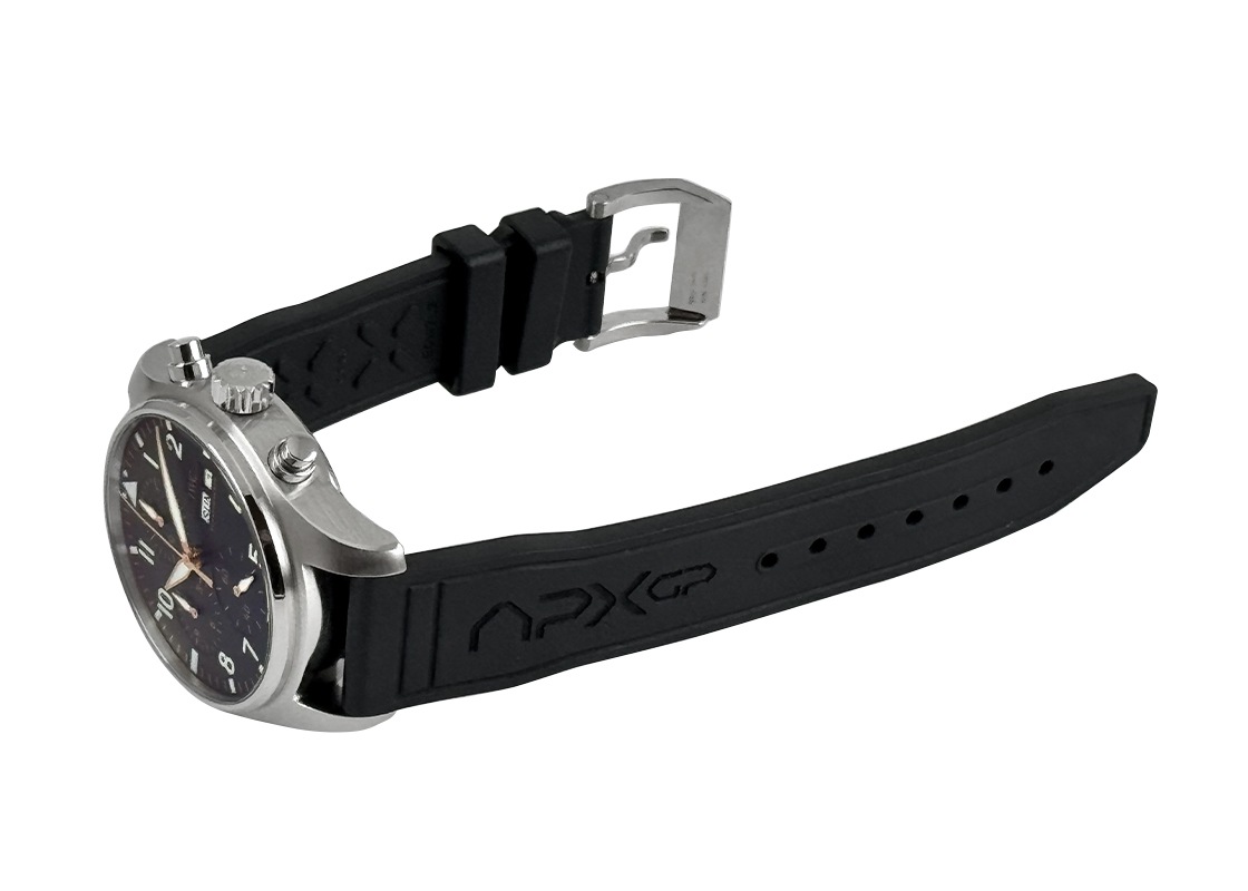 名門 IWC シャフハウゼンより、「パイロット・ウォッチ クロノグラフ APXGP」のUSED品が入荷いたしました。 本商品は、2025年公開の映画『F1® / エフワン』に登場する架空チーム「APXGP」に捧げられた、特別仕様のパイロット・ウォッチ。 IWCが劇中でチームの公式スポンサー兼レースタイムキーパーを務めたことを機に誕生した、映画とのコラボレーションモデルです。 ブラック文字盤にホワイトのアラビアインデックスを採用し、チームカラーを力強く表現。 さらに、ゴールドの針と分目盛りがアクセントとなり、高級感とスポーティーさを兼ね備えています。 ケースバックには、ティント加工を施したサファイアガラス越しにAPXGPロゴをプリント。 さらに耐久性に優れたラバーストラップにも同ロゴがレーザー刻印され、特別モデルならではのこだわりを随所に感じられる限定デザインです。 IWC独自の EasX-CHANGE® ストラップ交換システム を採用し、ワンプッシュで簡単にストラップ交換が可能。 ムーブメントは自社製キャリバー 69385 を搭載し、パワーリザーブは約 46時間 を備えています。 コンディションとして、内部点検および外装のライトポリッシュ(傷取り)を実施しております。7時方向のラグに僅かな使用感は残りますが、他に目立つ傷はなく綺麗な状態です。 付属品として、IWC純正の箱と保証書(2025年4月)が付帯いたします。 さらに詳しい内容を確認されたい方は、お気軽にお問い合せ下さい。 管理用:owq301