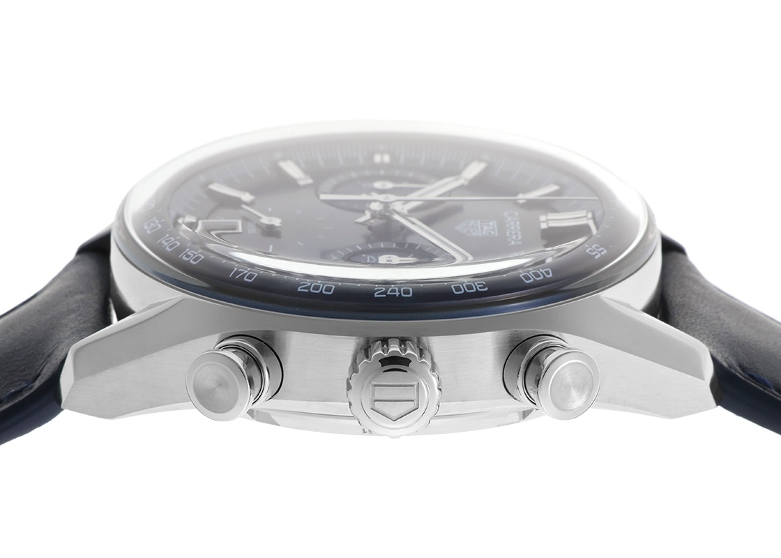 カレラらしい端正なデザインと、現代的なクロノグラフ性能が融合したモデル。