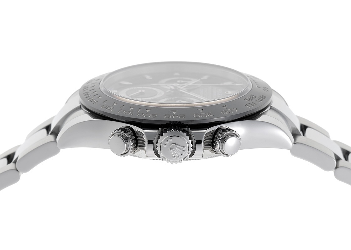 前モデルの116520からの変更点は、ステンレススティール製のベゼルがセラクロム(セラミック)に変わり、ベゼルのメモリもデザイン変更となりました。
