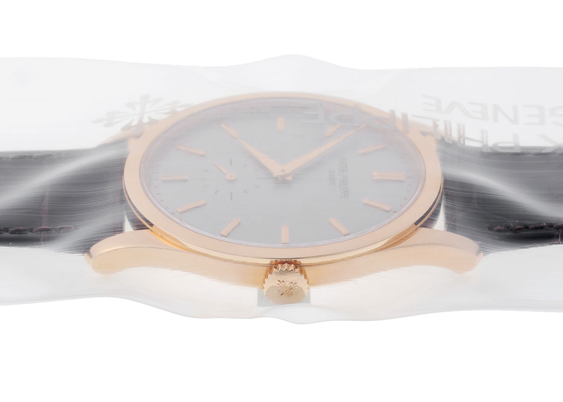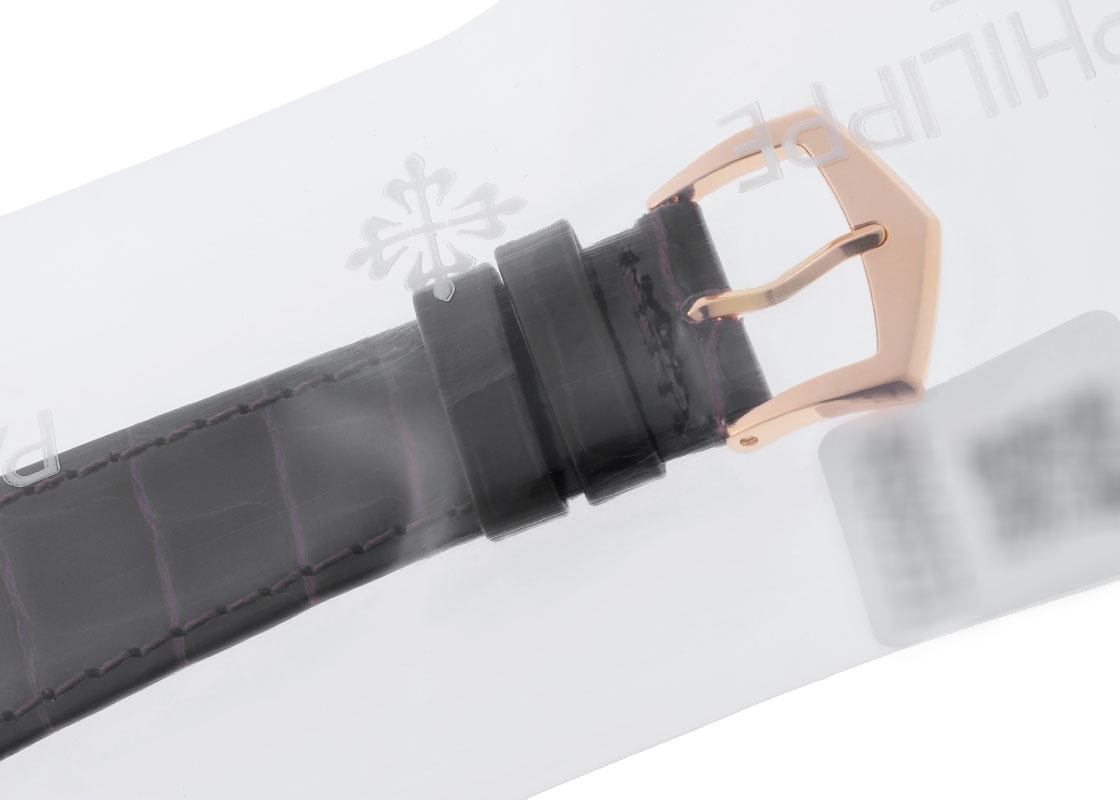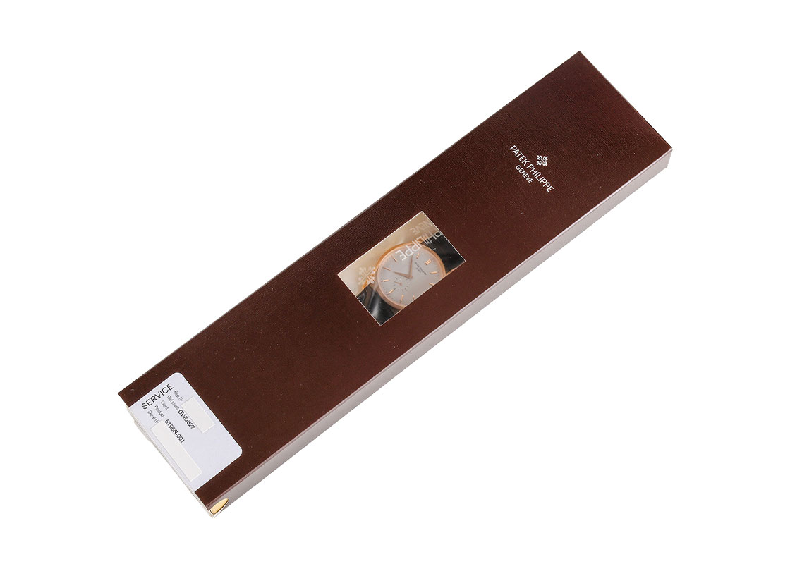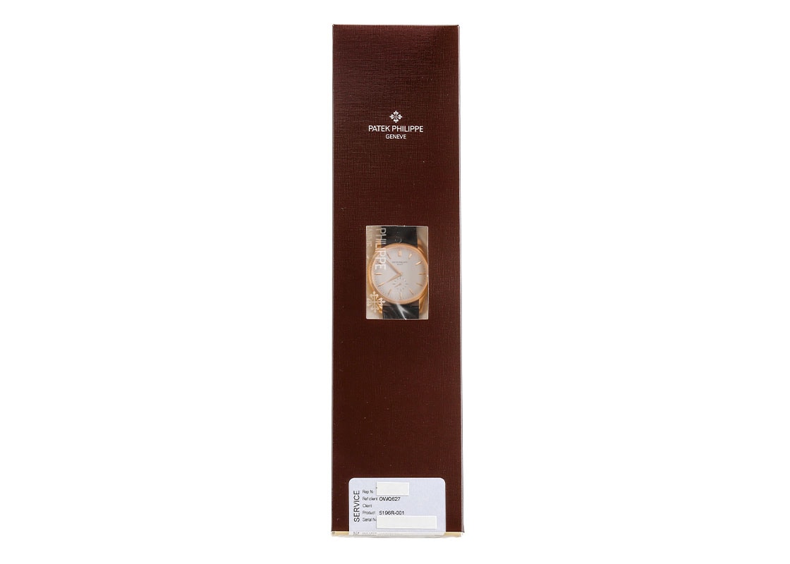 ドレスウォッチの王道として人気を誇る「カラトラバ 5196R-001」が入荷しました。 「クンロク」と呼ばれる初代カラトラバRef.96の特徴を忠実に受け継ぐ正統派。 流れるような流線形のフォルムが美しいケースは ラグまで一体形成されており、サイドに継ぎ目は一切ありません。 また、横から見ると絶妙な下向きにカーブを描くラグの形状が一層腕へのフィット感をもたらしています。 数字を用いないシンプルなアプライドインデックスとドーフィン針、スモールセコンドはクンロク系統のデザインコード。 ムーブメントは長年手巻き2針のカラトラバに安定して採用されるCal.215 PS。 ケース径はこれまでのクンロク系統では一番大きい37mmにアップデートされつつ、薄さは7.68mmに抑えられ、スーツの袖に干渉せずスマートです。 提携工房にて外装の傷取り(研磨)後に、パテックフィリップジャパンにてオーバーホール(分解掃除)と針、ガラス交換をおこない、ストラップも新品のクロコダイルベルトに交換済みです。 パテックフィリップの保証期間が2028年3月まで有効で、より安心してお使いいただけます。 ケースの9時位置に研磨で取り切れない傷が見受けられますが、外観を損なう大きな傷はございません。 付属品は修理明細書(2026年3月)、サービスケースがございます。 メンテナンス後どなたの手にも触れていない真空パック未開封の状態です。 ぜひ自らの手で開封するところからお楽しみください。 さらに詳しい内容を確認されたい方は、お気軽にお問い合せください。 管理用:owq627