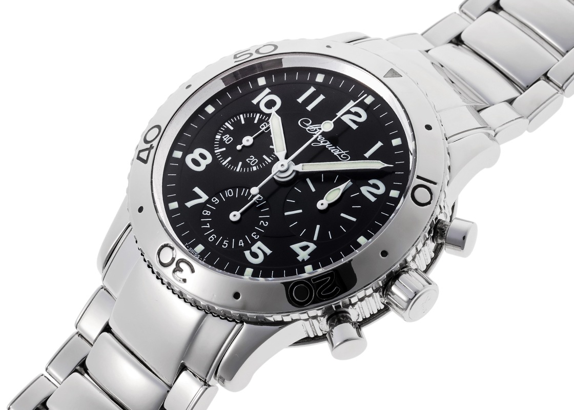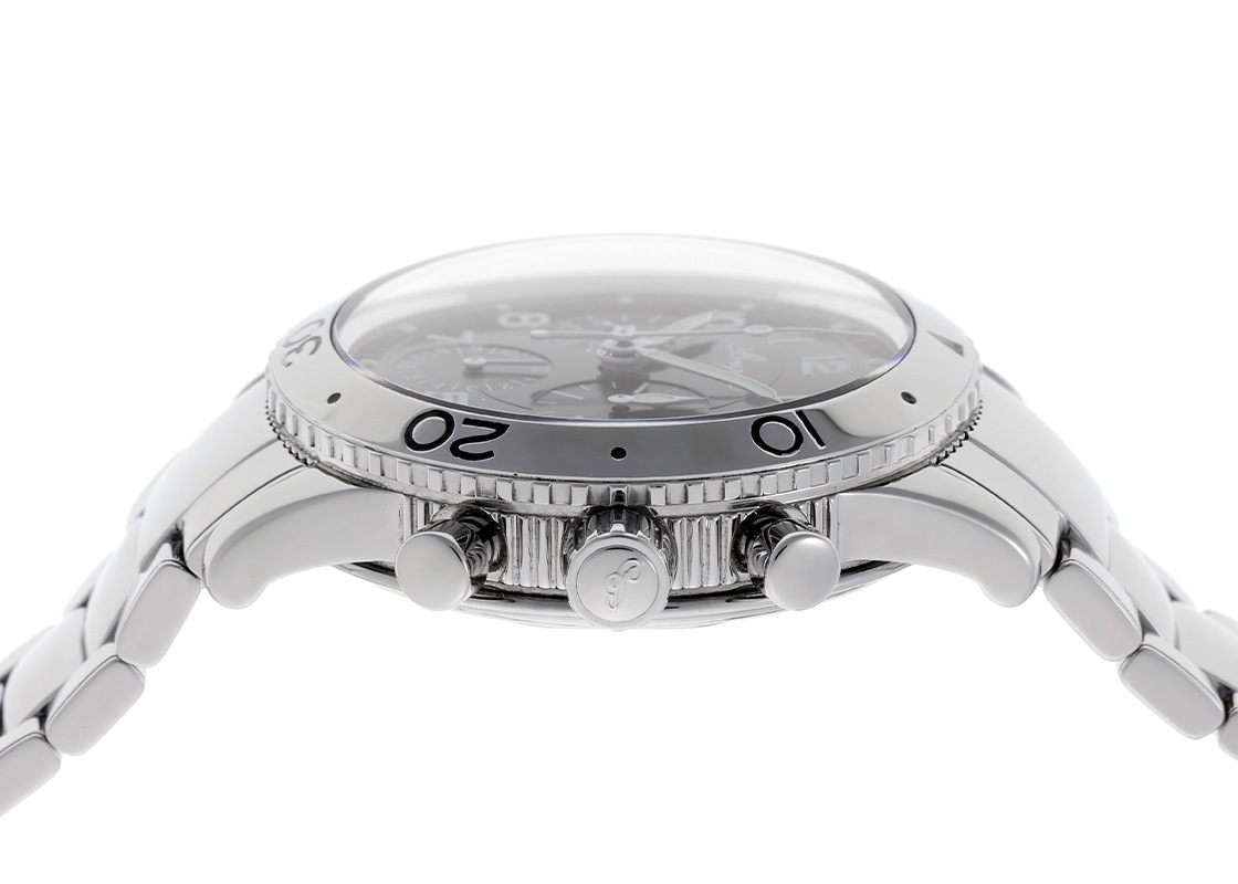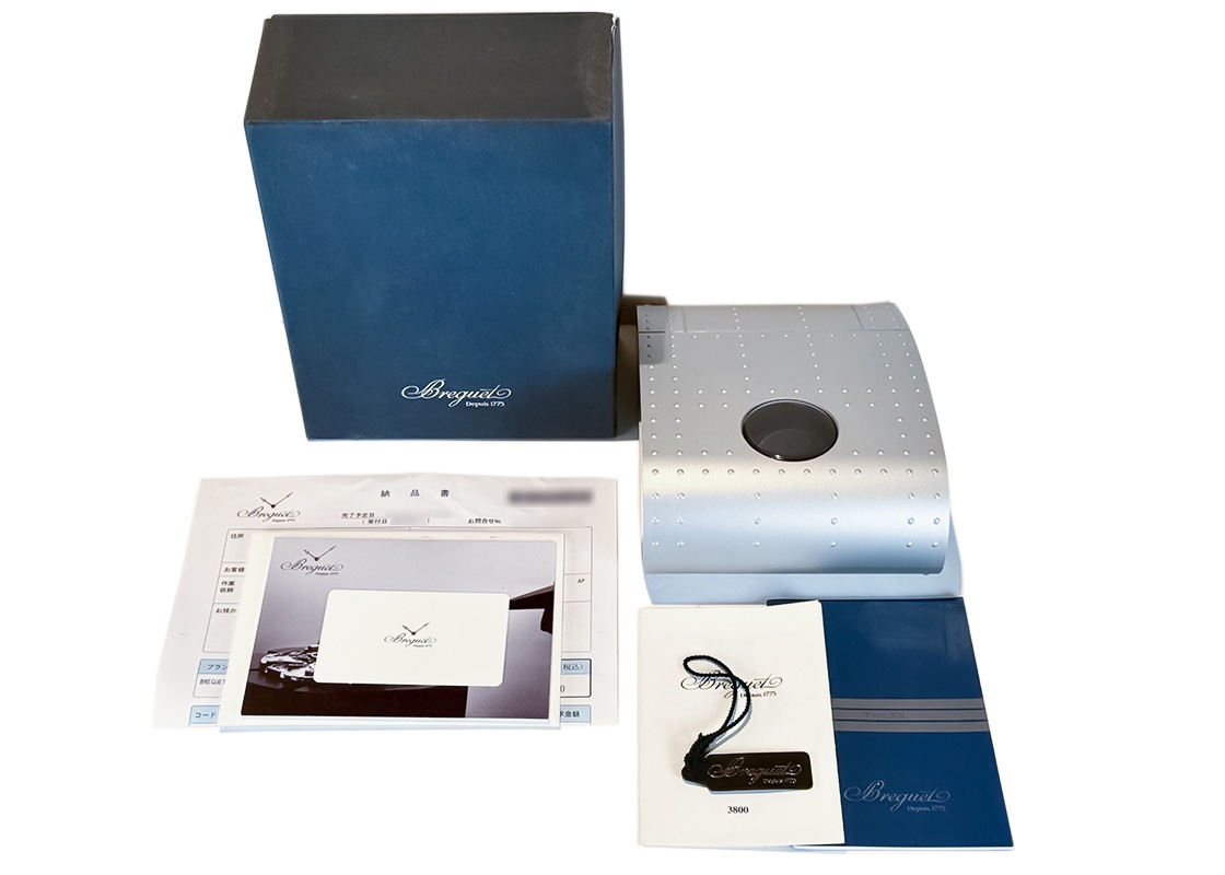 ブレゲの中でも人気を誇る「アエロナバル」の中古品が入荷いたしました。 1954年、フランス海軍航空隊の要請により製作された銘品「タイプXX」。 その歴史的意匠を受け継ぎ、1995年に発表されたのが「アエロナバル」です。 2018年まで生産されたロングセラーモデルとして、多くのユーザーから支持を集めてきました。 ケースサイズは腕馴染みの良い39mm。 側面には伝統技法となるコインエッジが施され、ミリタリーウォッチでありながらもブレゲらしい高級感と気品を感じさせます。 ドーム型サファイヤクリスタルは、パイロットウォッチとしての視認性を確保しつつクラシカルな佇まいを演出。 武骨さとエレガンスを高次元で融合させた唯一無二のデザインが魅力です。 ムーブメントには、名機ヌーヴェル・レマニア Cal.1372をベースに改良を加えた自社製Cal.582を搭載。 パワーリザーブは約48時間を誇り、実用性の高いフライバック機能付きクロノグラフを備えています。 すでに生産終了しているため、付属品の揃ったコンディションの良い個体は年々減少傾向にあります。 今後ますます注目度が高まり、人気の加速が予想される一本です。 コンデションは、精度は良好で当店にてライトポリッシュを施してあります。 目立つ傷もなく状態の良い個体です。 付属品は、箱・保証書(2002/09)・修理明細(2020/10)がございます。 さらに詳しい内容を確認されたい方はお気軽にお問い合せ下さい。 管理用:ii-640