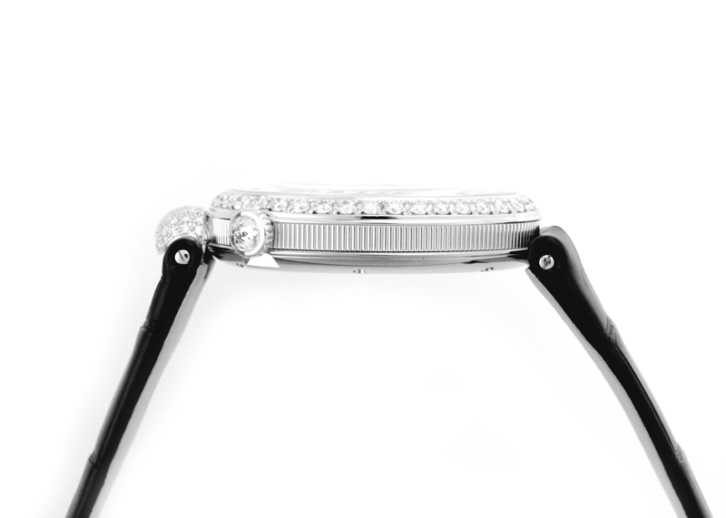 ホワイトゴールド素材のケースの上部には139個ものダイヤモンドを装飾し、時計の美しさと豪華さを最大限に表現しています。