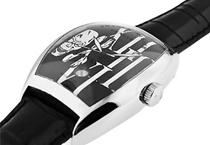 ファッションモチーフとしても人気の高いスカル(ドクロ)ですが、この時計にはラテン語の「メメント・モリ(死を想え)」というメッセージが込められています。