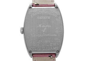 こちらの「カラードリーム グラデーション」は2008年に新たに加わったシリーズで、12時から反時計回りにインデックスの色合いが淡く変化していく、これまでのカラードリームとはまた違った魅力を持ったフランク ミュラーらしい遊び心を表現した時計です。