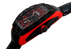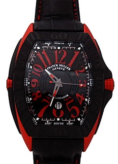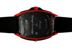 ケースサイドの赤い部分には6種類の金属を合わせた新素材「エルガ」が使われており、フランク ミュラーの新たなチャレンジを感じさせるモデルです。