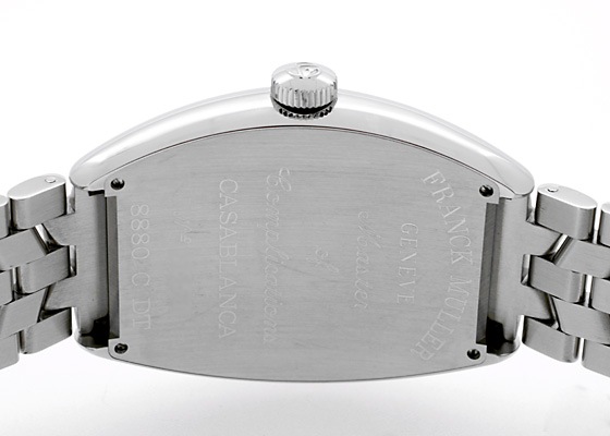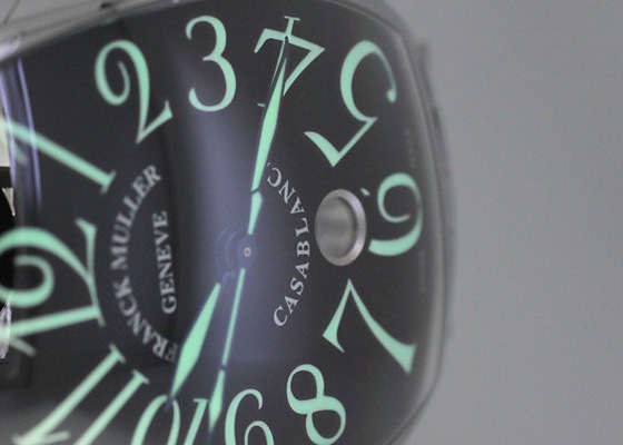 カサブランカはフランクミュラー初のステンレススティールモデルであり、ビザンインデックスに畜光塗料を施し、街路灯のない暗いところでも視認性の良いモデルです。