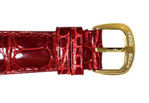 ルビーに合わせてセットされた赤のレザーベルトがこの時計の存在感をより引き立てています。