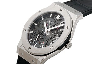クラシック フュージョンのシンプルさとウブロらしいメカニカルで迫力あるデザインが一度に楽しめる、オススメの1本です。