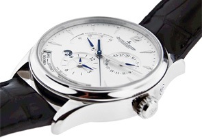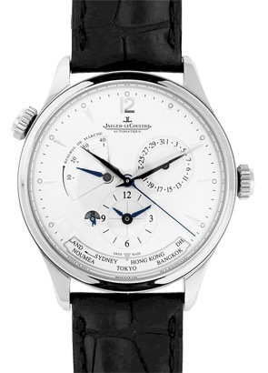 ジャガールクルトが放つ多機能搭載の腕時計「マスタージオグラフィーク」です。 多機能でありながらシンプルで絶妙なバランスの文字盤時の流れを繊細に演出しています。