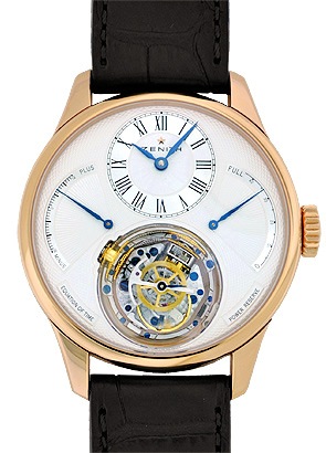 荒海の中でもメカニズムを大地に対して水平に保つ機構であり、ゼニスの歴史的名品でもある航海用のマリンクロノメーターに着想を得て作られたジャイロスコープ型の「ZERO-G トゥールビヨン」を搭載しています。
