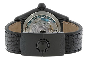 PVDが施された黒色のケースに黄色の文字盤の組み合わせ。 目立つこと間違いなし。