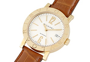 ベゼルの「BVLGARI BVLGARI」の刻印が特徴的なデザインです。