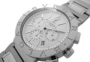 白文字盤にブルガリならではの洗練されたデザインが品の良い印象を感じさせる1本です。
